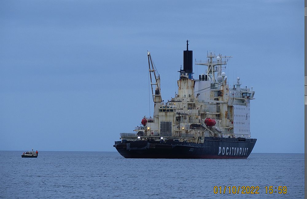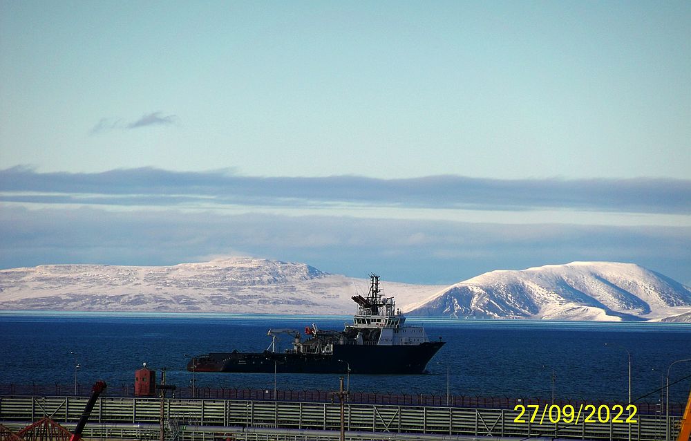 Последние штормовые дни "Вайгач" провёл у мыса Наглёйнын, где будет порт и 4 плавучих атомных станции. Сейчас там небольшой модульный комплекс. Других судов нет. Чем его присутствие там обусловлено Атомфлот не сообщает.