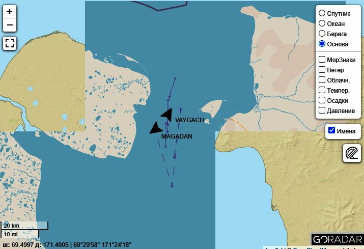 "Магадан" подбегал к "Вайгачу", потом вернулся к Мысу, потом "Финвал" сбегал к "Магадану" и вернулся. Теперь вот "Вайгач" побёг на Колыму. Эстафета у них какая-то что ли?