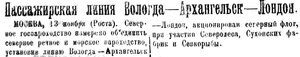 Пассажирская линия Вологда—Архангельск—Лондон.