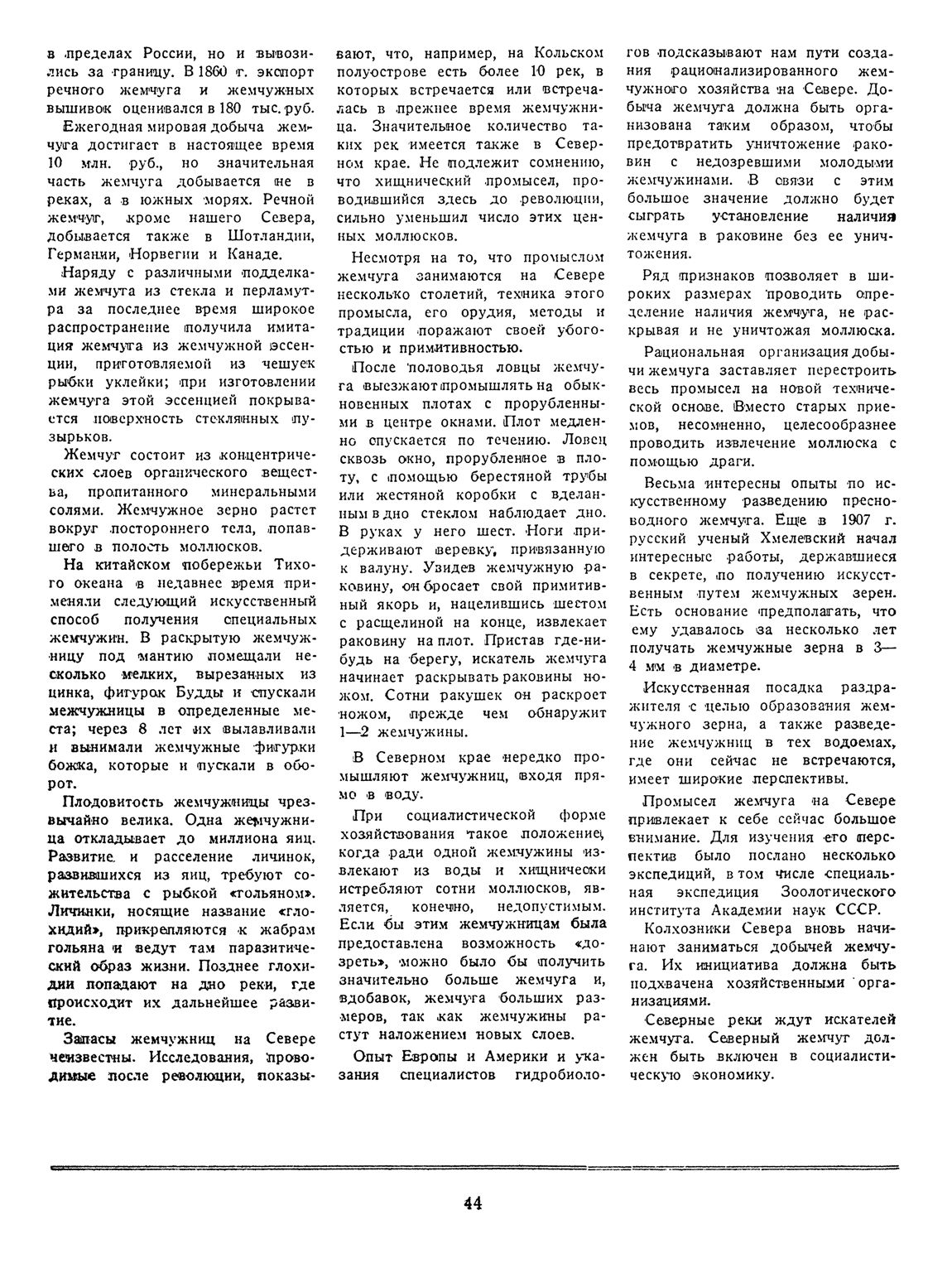 Знименеиий Ю. И. Жемчуг на севере// Наука и жизнь 1938 №06 с.43-44