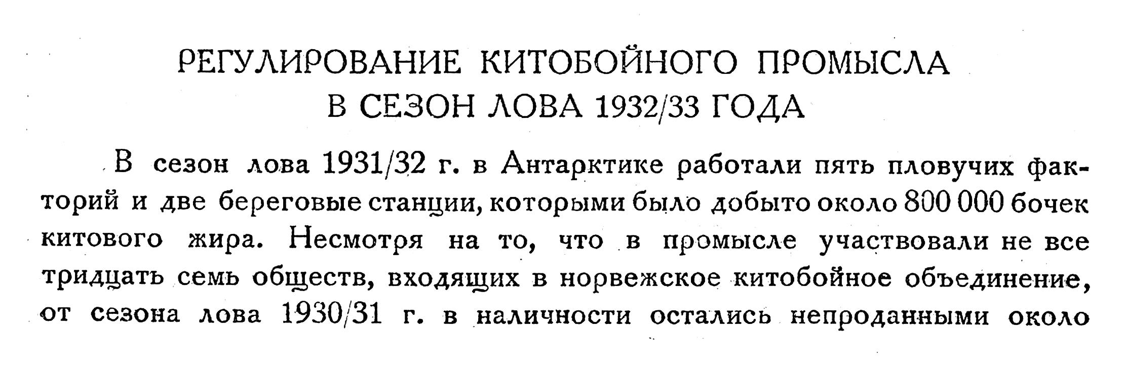 РЕГУЛИРОВАНИЕ КИТОБОЙНОГО ПРОМЫСЛА В СЕЗОН ЛОВА 1932/33 ГОДА
