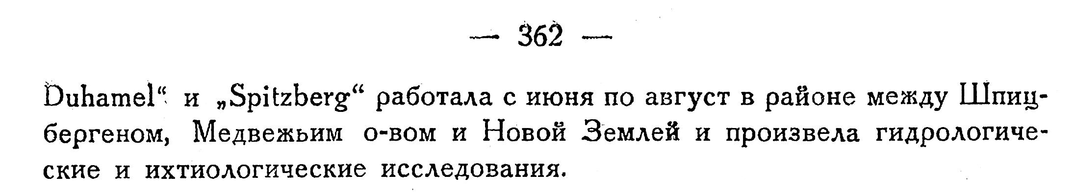 Duhamel" и „Spitzberg" работала с июня по август в районе между Шпицбергеном, Медвежьим о-вом и Новой Землей и произвела гидрологические и ихтиологические исследования.