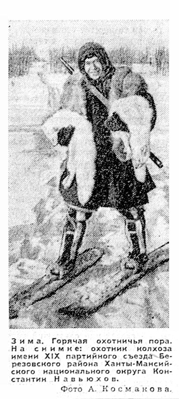 Зима. Горячая охотничья пора. На снимке: охотник колхоза имени XIX партийного съезда Березовского района Ханты-Мансийского национального округа Константин Навьюхов.