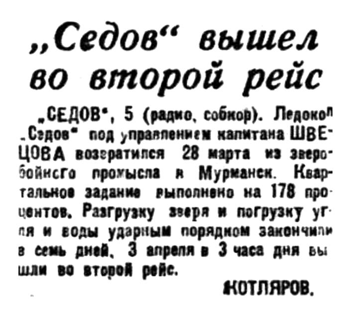 Баум, три года проработавший в Уэллене, на крайней северо-востоке Союза. Вместе с т. Баумом на станции будут работать охотовед и моторист. Охотовед произведет обследование чукотского побережья, а моторист займется подготовкой кадра мотористов-чукчей.