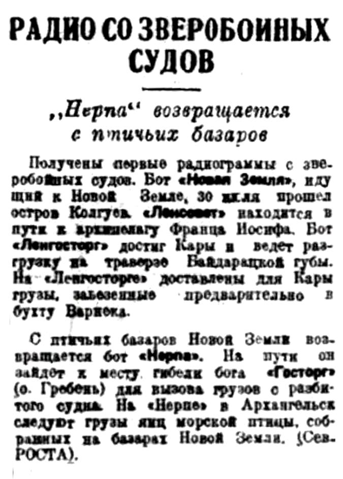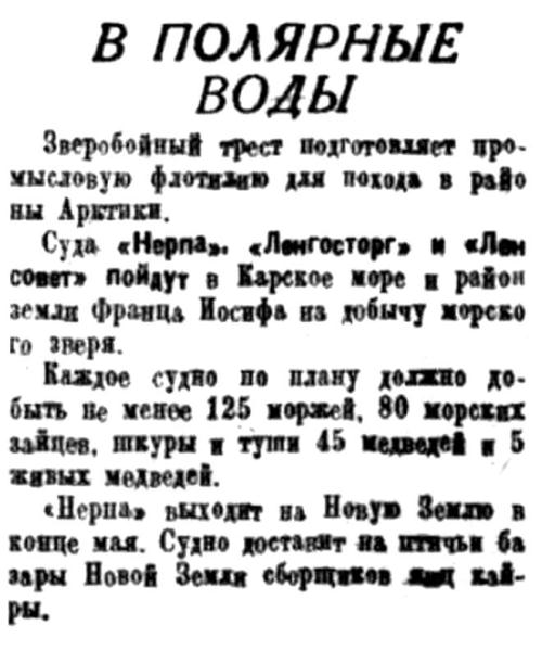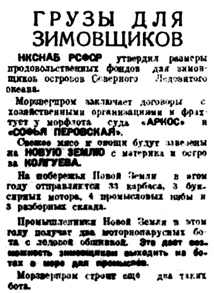 Комсомольцы-чукчи Восточно-Сибирского района и безбожники, которые имеются среди туземцев, будут первыми помощниками вновь организуемой производственно-охотничьей станции. Они, знающие комсомольца Баума, помогут ему организовать бригады охотников на полярного волка.