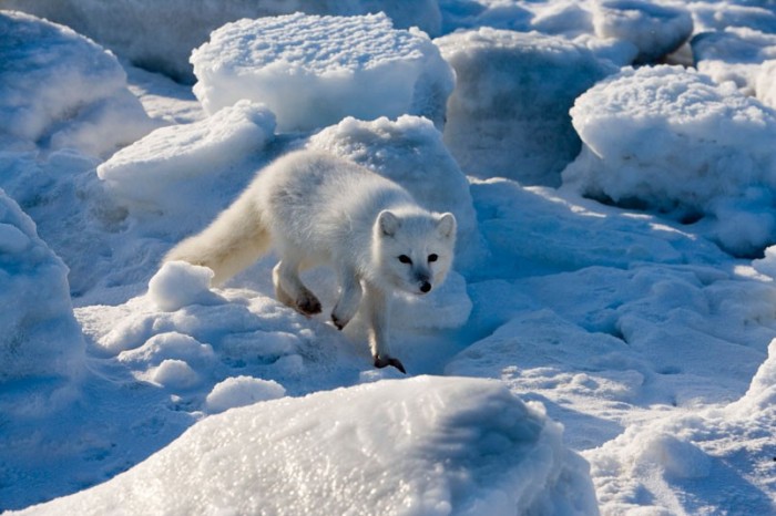 Тундра – родной дом для песцов. Морозы, снега, холодные скалы, арктические пляжи побережья Северного Ледовитого океана для белоснежных красавцев - привычная среда обитания, где не всегда сытно, но зато привольно. Этот самый маленький представитель семейства собачьих, живет во всех приполярных зонах Северного полушария. Почти третья часть жизни песца проходит при температуре ниже нуля. Но они отлично приспособились к суровым условиям Арктики. Песец очень похожий на лисицу. Главным отличием является более грузное тело, укороченная мордочка и короткие лапы.
