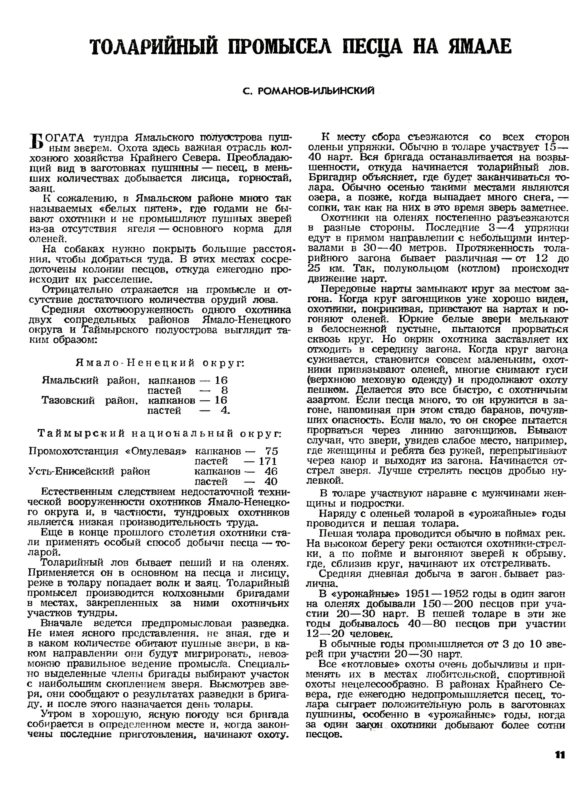 ТОЛАРИЙНЫЙ ПРОМЫСЕЛ ПЕСЦА НА ЯМАЛЕ