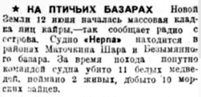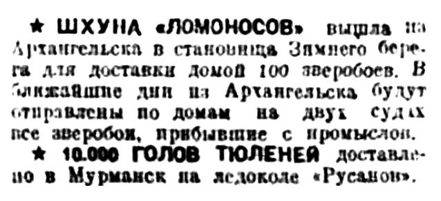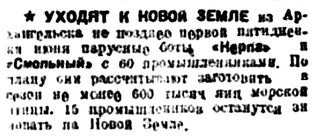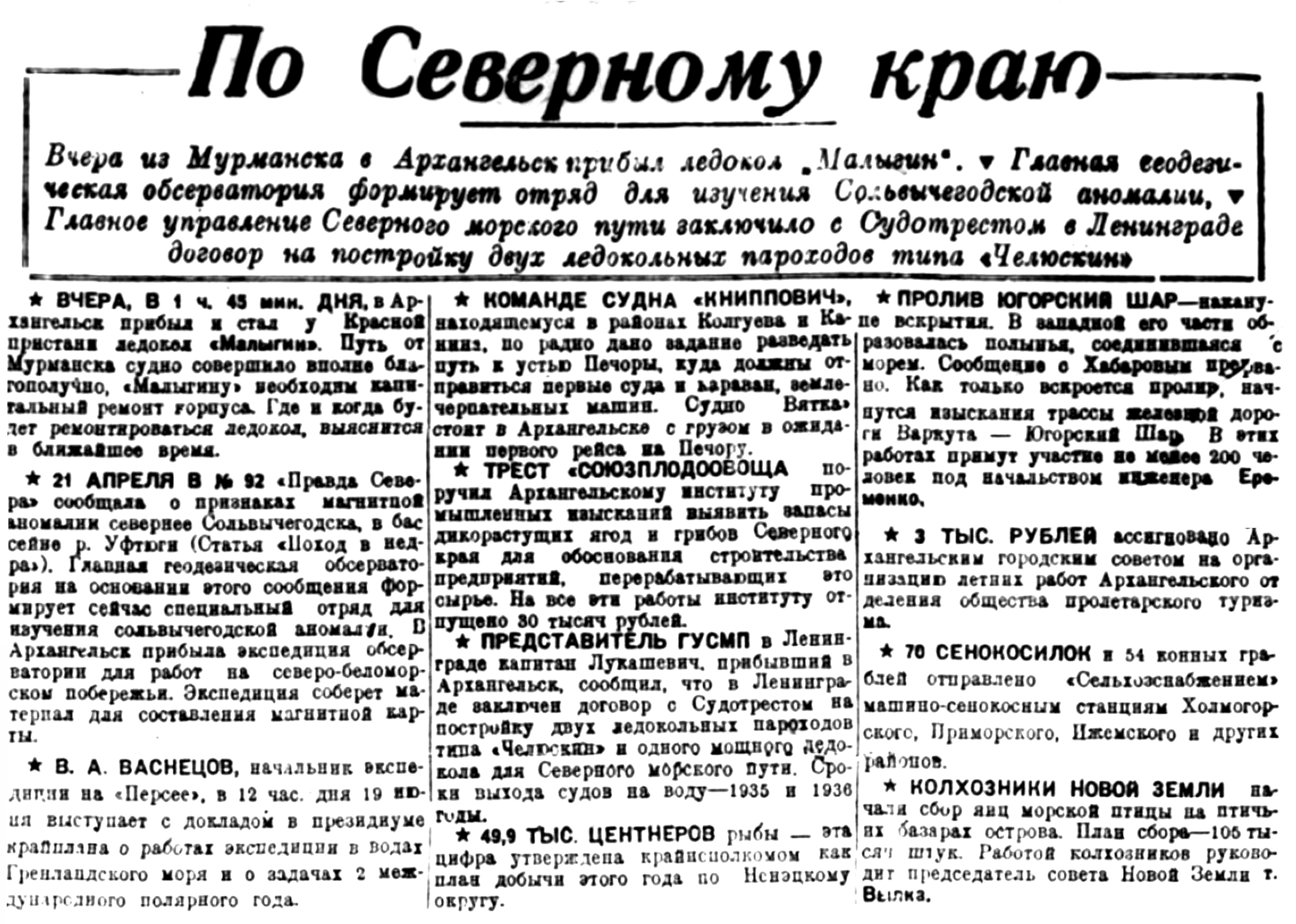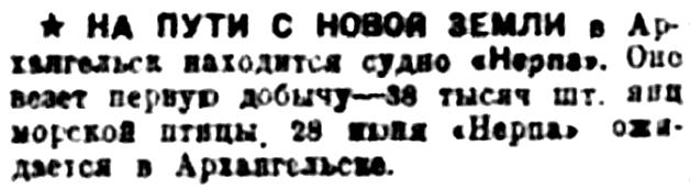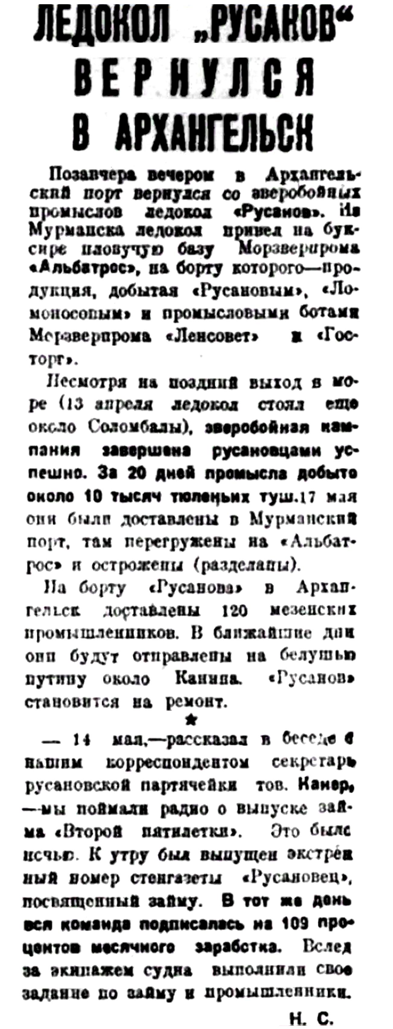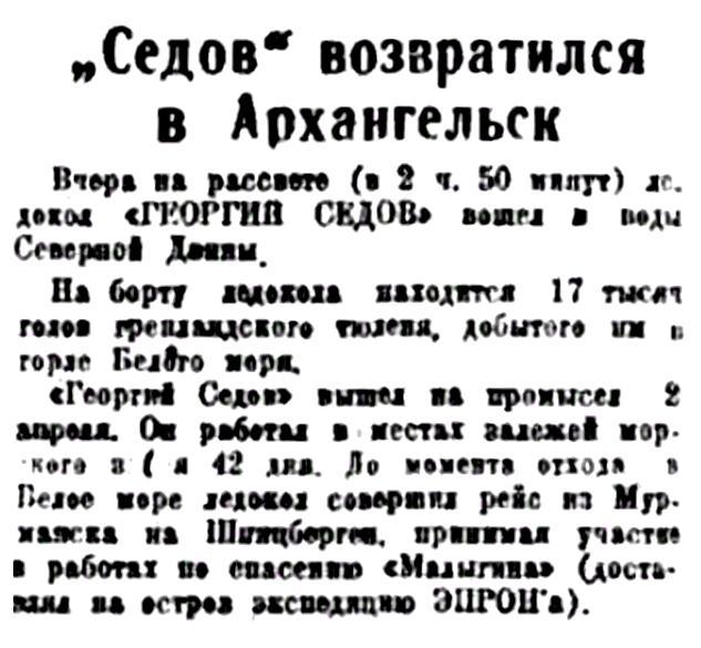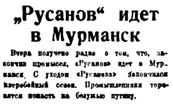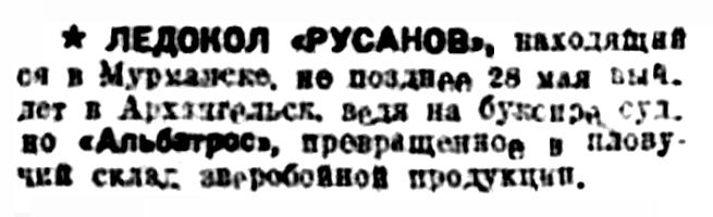 Правда Севера, 1933, № 130, 8 июняЛЕДОКОЛ "РУСАНОВ" ВЕРНУЛСЯ