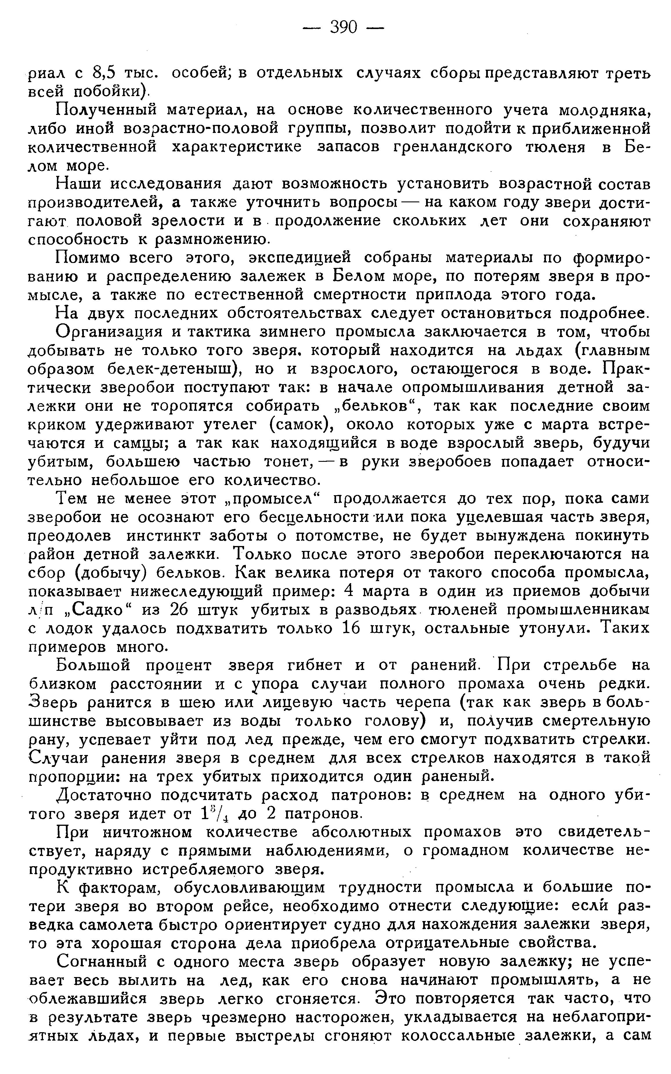 Суммируя далеко не полностью причины, вызывающие значительный процент потери зверя в беломорском промысле, можно выразить сожаление по поводу того, что до сих пор на них не было обращено должное внимание.