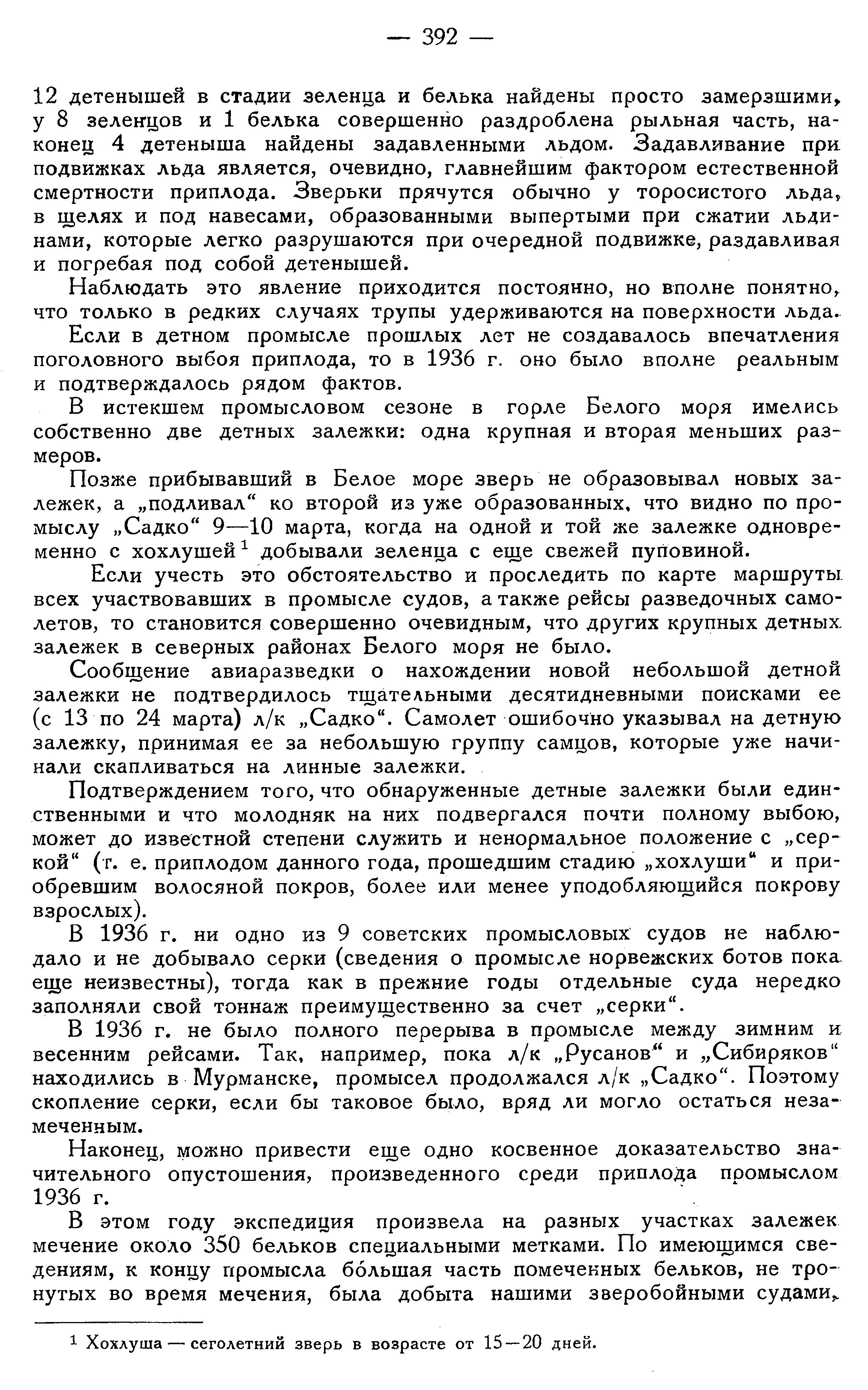 "бурсой" и норвежцами. Это обстоятельство красноречиво говорит о том небольшом количестве сеголетнего зверя, которое в 1936 г. уцелело от промысла.