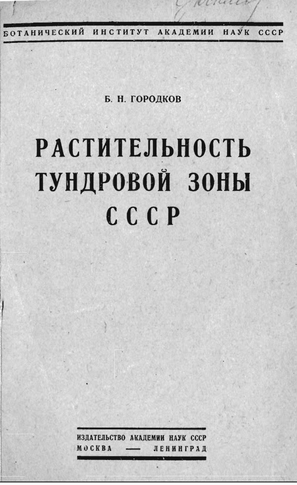Сто лет назад изучение флоры и растительности Крайнего Севера проводил сотрудник Ботанического музея геоботаник Б. Н. Городков, который обследовал низовья р. Оби (1917 г.), Полярный Урал (1924–1926 гг.), Гыданскую тундру (1927–1928 гг.), бассейн р. Усы, притока Печоры (1931 г.). Б. Н. Городков разрабатывал вопросы оценки состояния и практического использования оленьих пастбищ, безлесья тундры, исследовал влияние вечной мерзлоты на растительный покров, одним из первых изучал бугристые торфяники. Он впервые провел геоботаническое районирование тундровой зоны и дал определение типу тундровой растительности. Им были изданы первые обобщающие сводки о растительности Арктики и горных тундр (Городков, 1935, 1938).