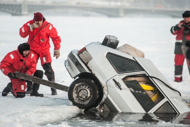 И хорошо, если река или озеро мелкие, тогда дело ограничится лишь притопленной машиной и промокшей одеждой. Жалко, но не смертельно. Но что делать, если лёд затрещал под вами там, где глубина достигает десятка метров? Ежегодно в России сотни автомобилей уходят под воду — большинство тонет во время зимней рыбалки. В такой ситуации приходится рассчитывать только на своё здравомыслие и хладнокровие, но для утопающих есть несколько общих советов.