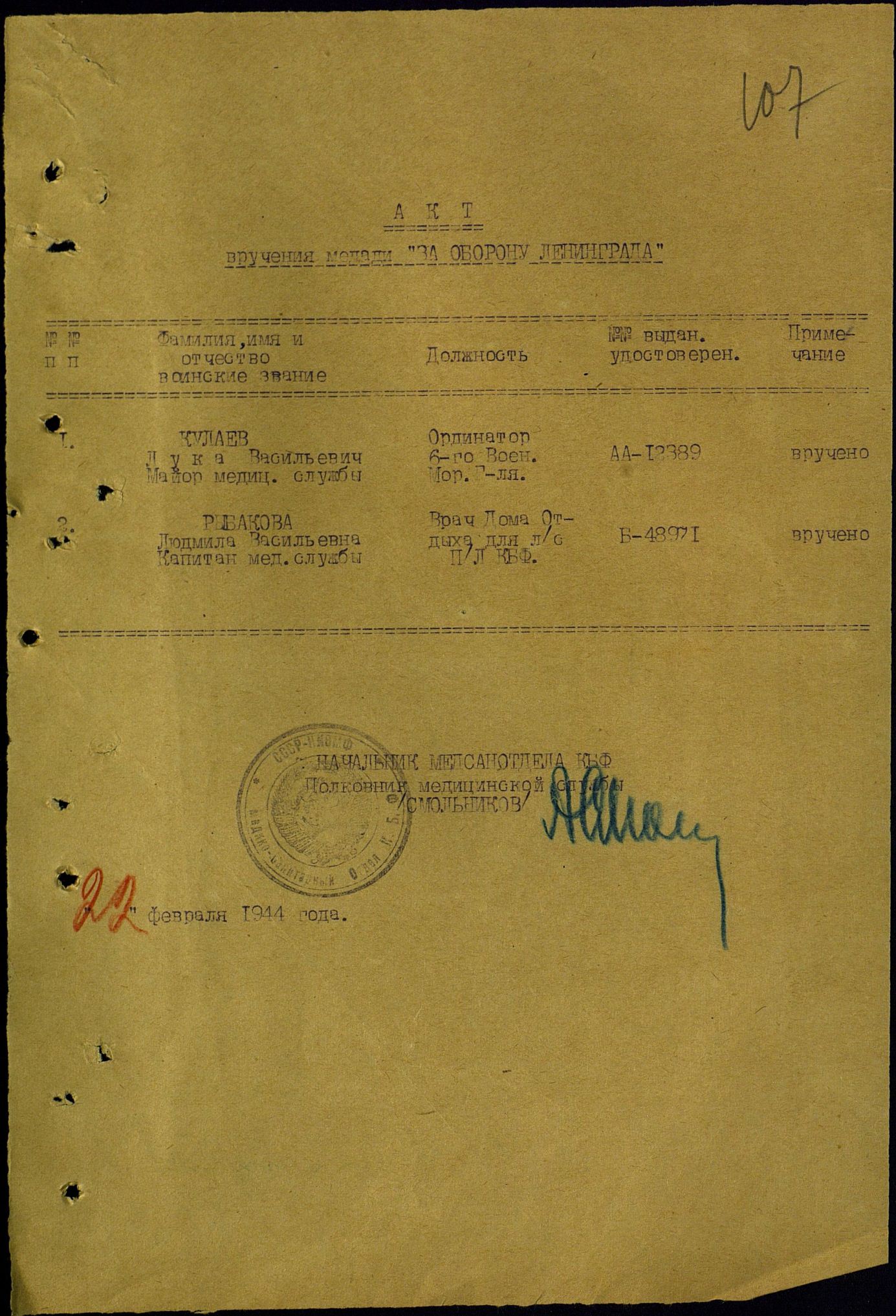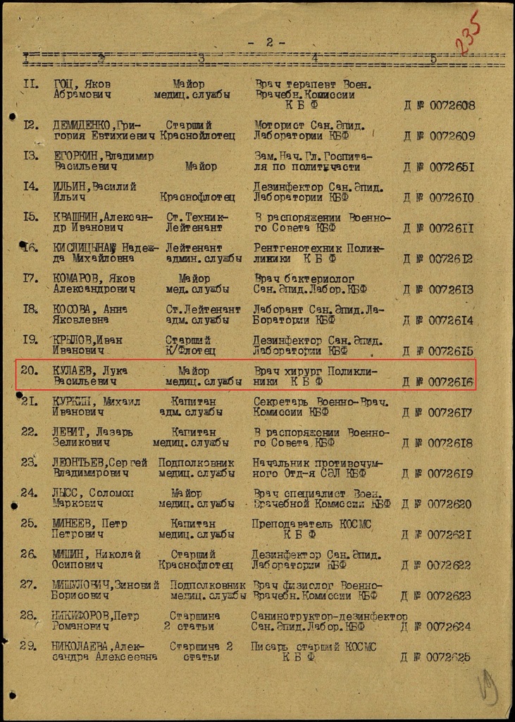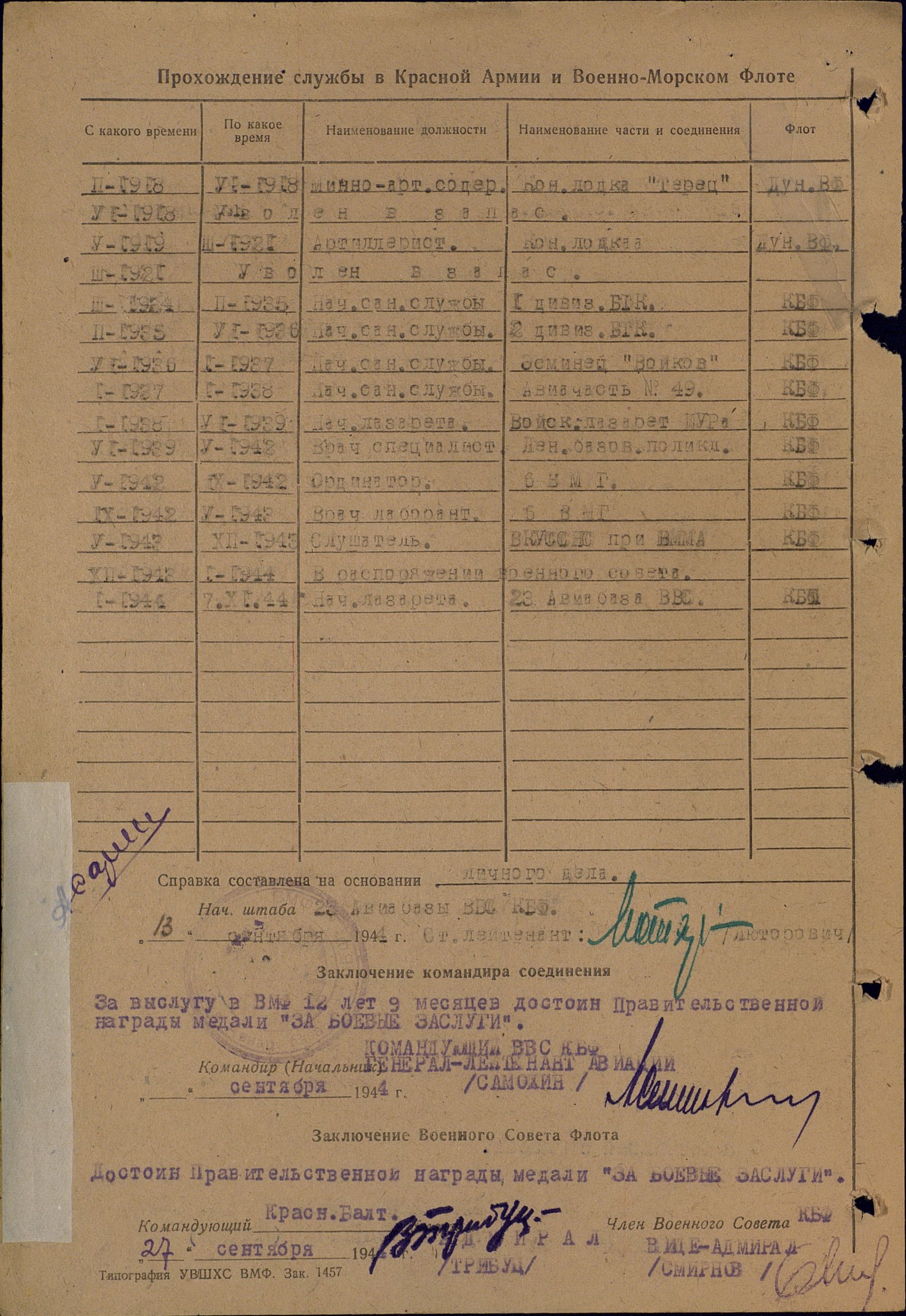 Начальник п/станции бухта Тихая (3-я смена) 1931-1932 гг., врач ЭОН-3 (1936 г.) на миноносце "Войков".