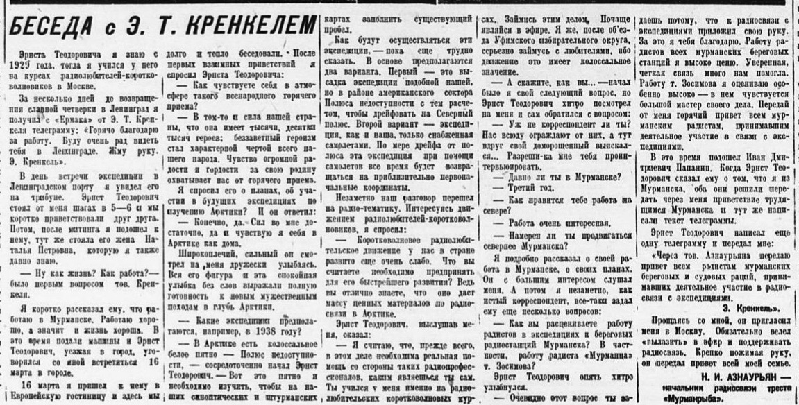 Вот тут главы из книги воспоминаний о Кренкеле: "Наш Кренкель"