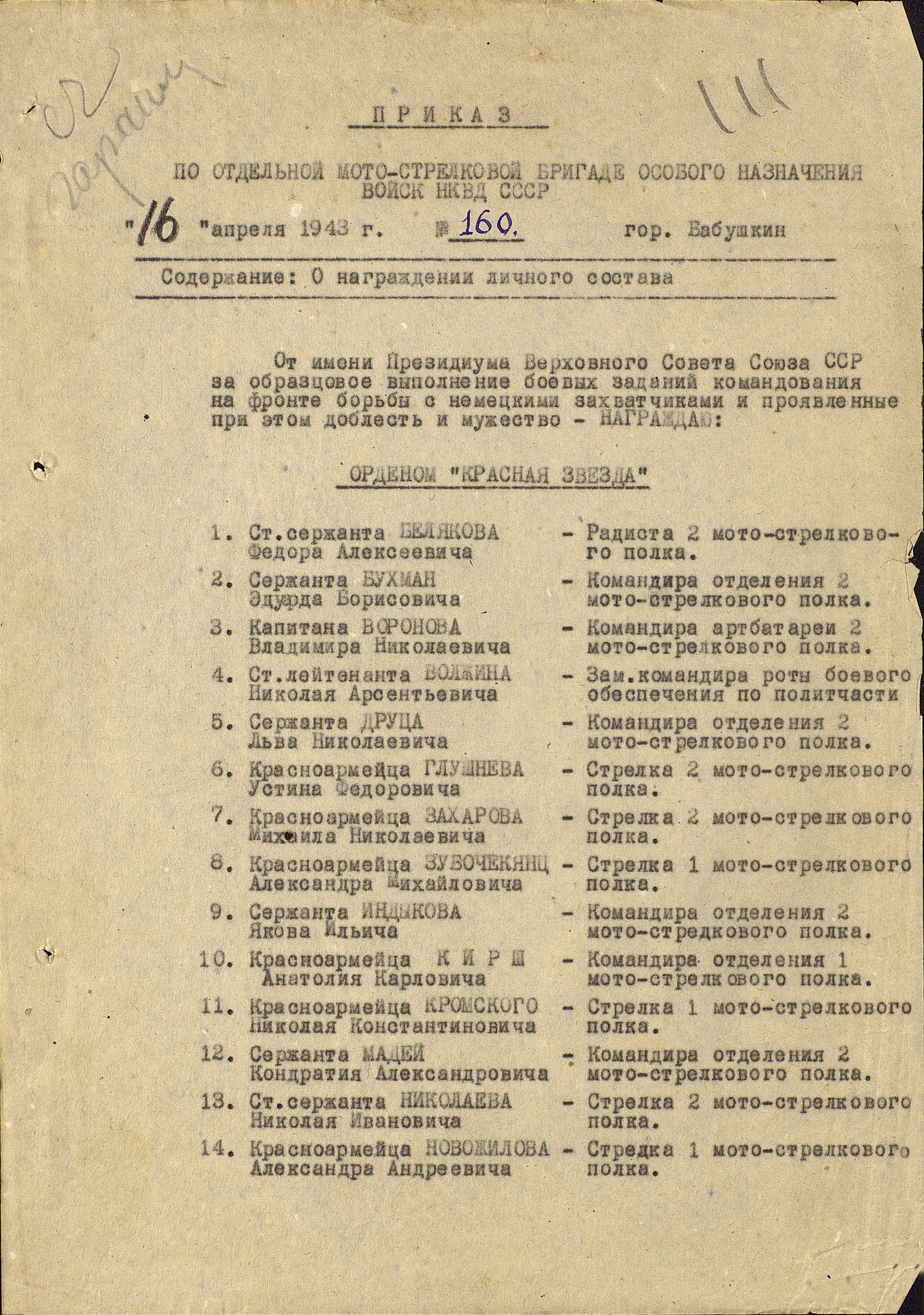 За успешное обслуживание самолётов и добросовестное отношение к выполнению задания по связи П Р И К А З Ы В А Ю:
