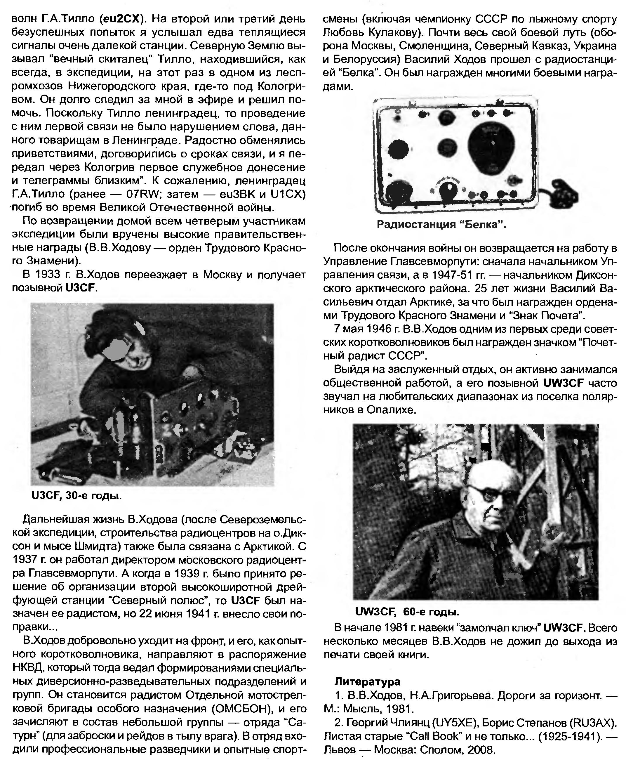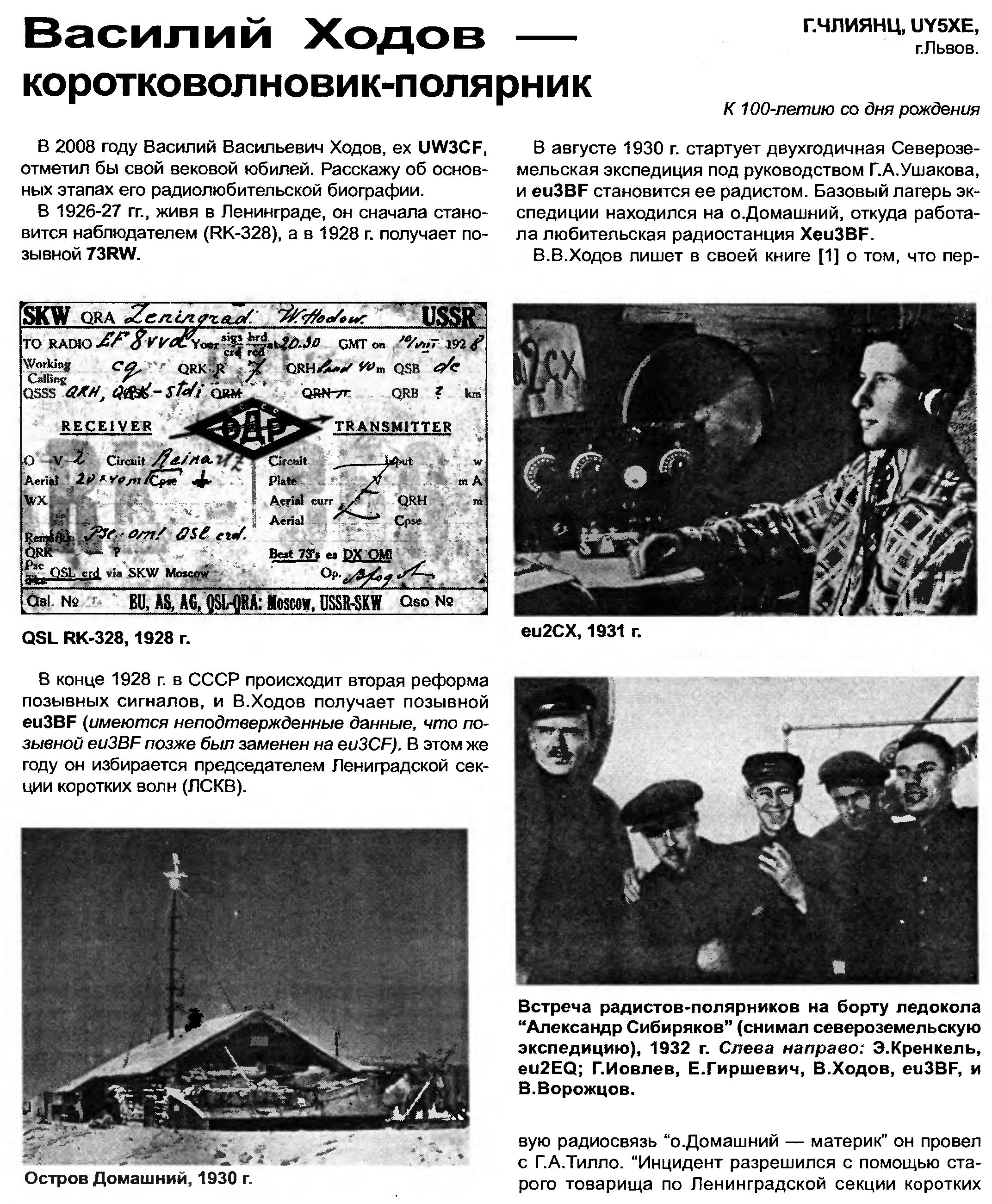3. Георгий Члиянц, UY5XE. Василий Ходов – коротковолновик-полярник. ("Радиомир. КВ и УКВ": #11/ 2008, c. 6-7).