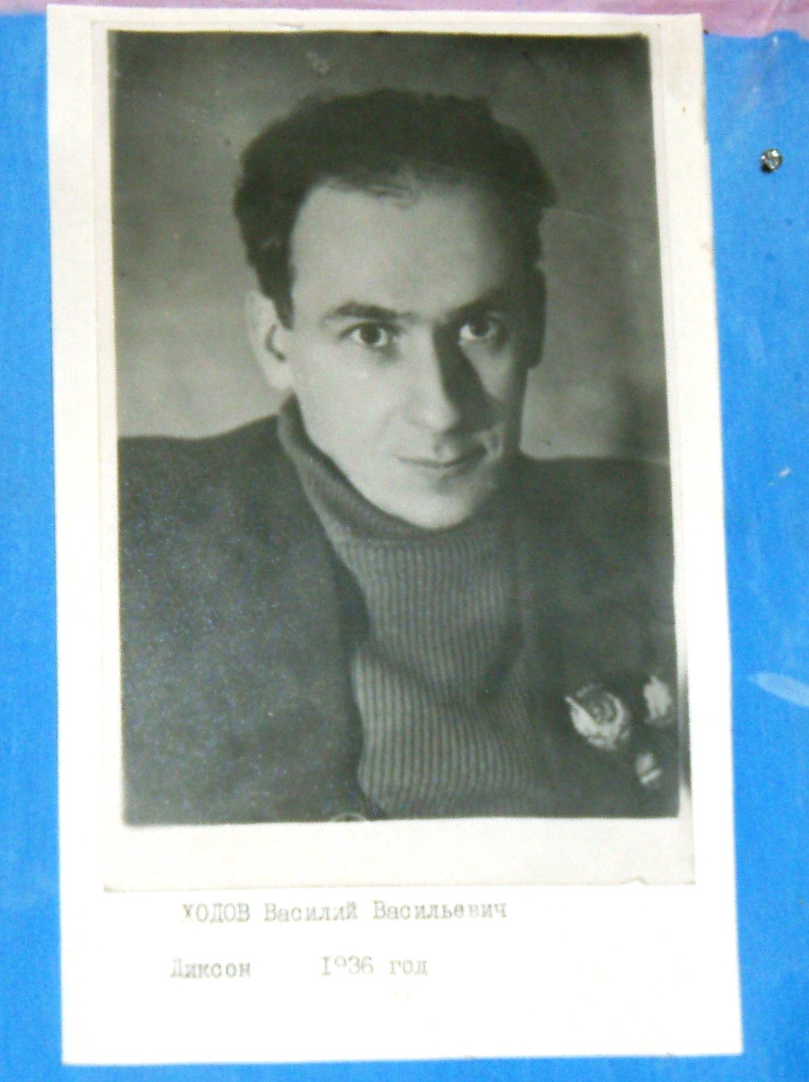 Мама говорила, что они привезли меня на остров Диксон шестимесячной. Уехали мы оттуда, когда мне было шесть лет, значит в 1952 году. Я помню только наше последнее жильё - большой двухэтажный дом-барак. На первом этаже в нашем подъезде был детский сад, его устраивали взрослые с большой любовью, для своих же детей старались. А мы жили на втором, на площадке было 2 квартиры, в нашей было несколько комнат, не помню сколько точно. Помню, что наша была крохотная - одни кровати - моя, родителей и тётушки, маминой сестры, которая всю жизнь посвятила нам, своим племянникам. Рядом в большой комнате жила семья дяди Вани Седякина с двумя детьми Колей и Серёжей, моими друзьями, ещё жили Щелчковы и ещё кто-то. А квартиру напротив занимал "папа Ходов", как за глаза его называли между собой полярники. По-видимому, этот дом был построен одним из первых, и его заселили семьи с детьми и островное начальство. Квартира жила по принципу коммуны. В небольшой кухне, которую называли кают-компанией, была одна печь и не было возможности готовить нескольким хозяйкам, поэтому женщины установили дежурства и готовили по очереди на всех, сначала кормили детей, потом взрослых. Вечером в кают-компании ужины превращались в какие-то обсуждения, очень часто пели и пели очень хорошо, на голоса, но а детвора играла в это время в свои игры в коридоре или у кого-нибудь в комнате. В коридоре стояла большая бочка, куда мужчины ставили оттаивать выпиленные из наста кубы снега, это была вода для готовки и хозяйства. На мой взгляд жили очень дружно, помогали друг другу, наши детские ссоры всегда решались с юмором и мирно. А работать взрослым приходилось очень много. У каждого была своя работа по профессии, тогда ведь только в воскресенье был выходной. Так вот в воскресенье все должны были работать на какой-нибудь стройке. Мама говорила, что когда они приехали, то жили в какой-то жуткой избушке. А когда мы уезжали, то построили там большую баню, несколько больших домов, помню, как строили все скопом какую-то дорогу, привезли несколько коров и меня водили подивиться на них. Мама говорила, что Ходова люди уважали и боялись, что любой пьяный, увидев вдалеке ВВ, моментально трезвел. Ну и жёсткий был, видимо, людей не щадил, все соки выжимал, но и себя не щадил тоже. Время было такое. Мой отец никогда со временем не считался, если надо что-то сделать, умри, но сделай. Это были люди какой-то особой закалки, сейчас это из народа практически выветрилось. Помню, отец был уже на глубокой пенсии, когда Ольгерд Евгеньевич Змачинский в письме жаловался, что теперь полярник другой пошёл, в воскресенье пальцем не шевельнёт, и умолял отца приехать хоть на годик, обещая всяческие блага. Я не знаю, не помню, как складывались отношения с Ходовым у взрослых в нашей квартире, по-видимому, дистанцию какую-то он соблюдал, но для меня маленькой он делал исключение. Может, у него на Большой Земле (как тогда говорили) осталась дочка? Мальчишкам доступ в его квартиру был закрыт, а я была единственная девочка в нашем подъезде и мне разрешалось приходить к нему. Мне доставалась конфета и разговоры. У тётушки все подружки были радистки, все новости узнавали первыми и делились с ней, а у меня ушки были на макушке и мгновенно все застревало в мозгу. Грозный ВВ начинал разговор: " Какой пароход у нас на подходе?", а я деловито докладывала после