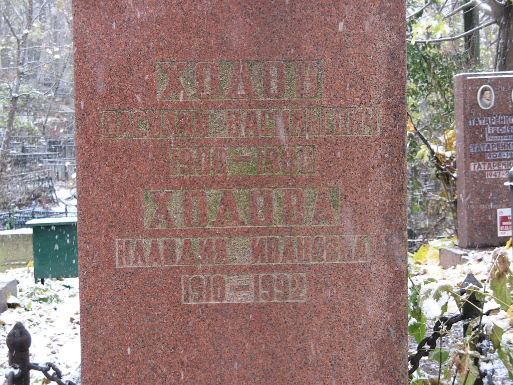 Дата захоронения Ходова Василия Васильевича- 27 Октября 1980 года. Введенское кладбище , участок 30, Москва.