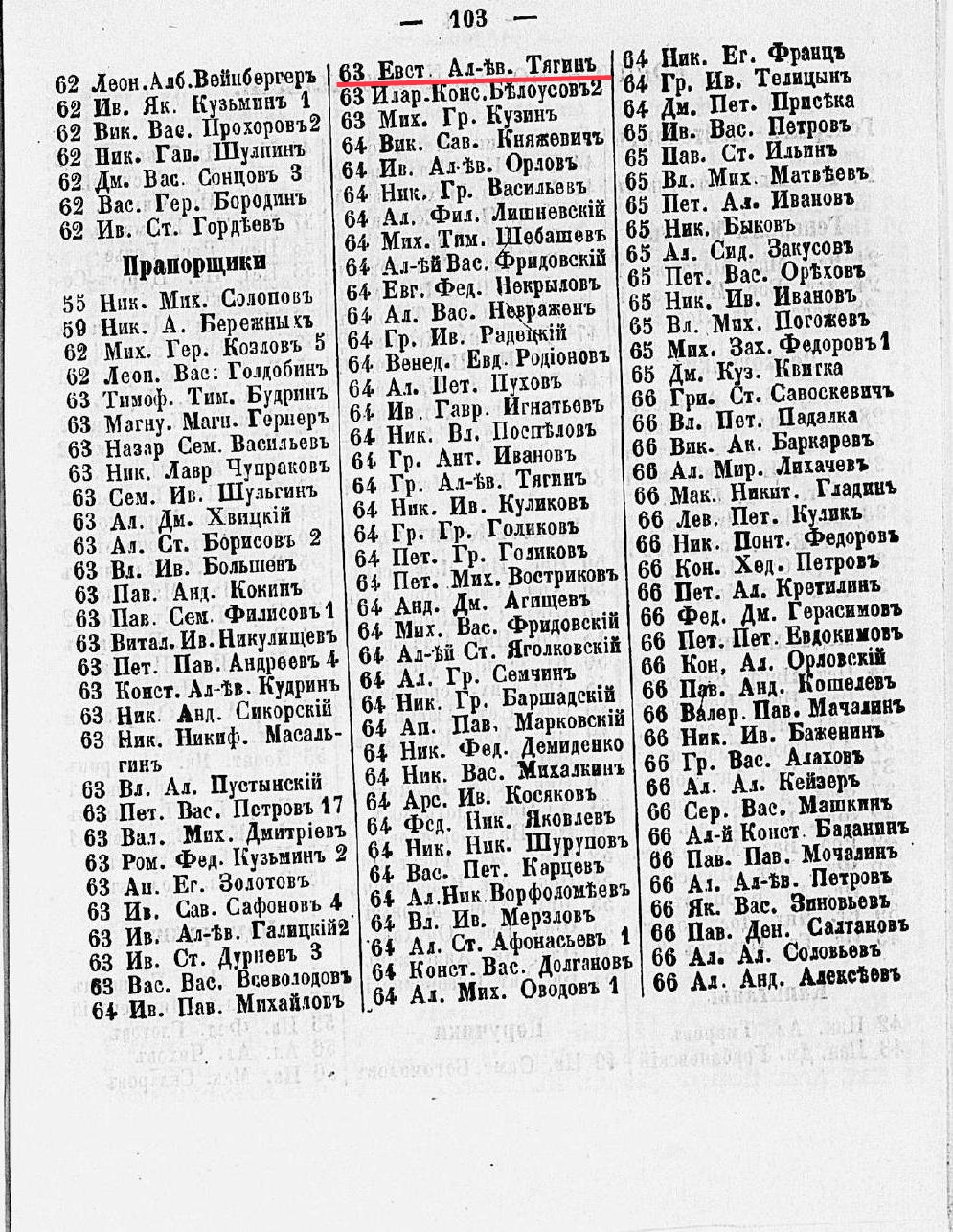 Прапорщик КФШ Евст. Ал-ев Тягин