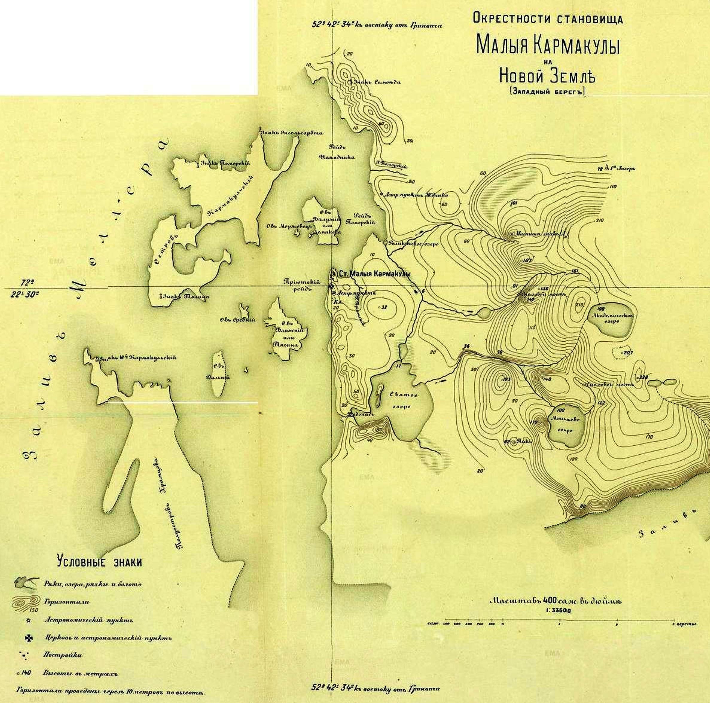на Белом море. В 1878 году он согласился возглавить работы по достройке и оборудованию спасательного приюта в Малых Кармакулах, начатые им годом раньше, а главное — перезимовать в нем. Вместе с женой Александрой Ивановной, двухлетним сыном Платоном высадился он со шхуны «Бакан» на неприветливый новоземельский берег. Зимовавшие здесь русские промышленники и ненцы за исключением двух старух находились на промысле. Грязь и запустение царили в приютской избе. Даже постели после умерших зимой от цинги двух промышленников не были убраны.