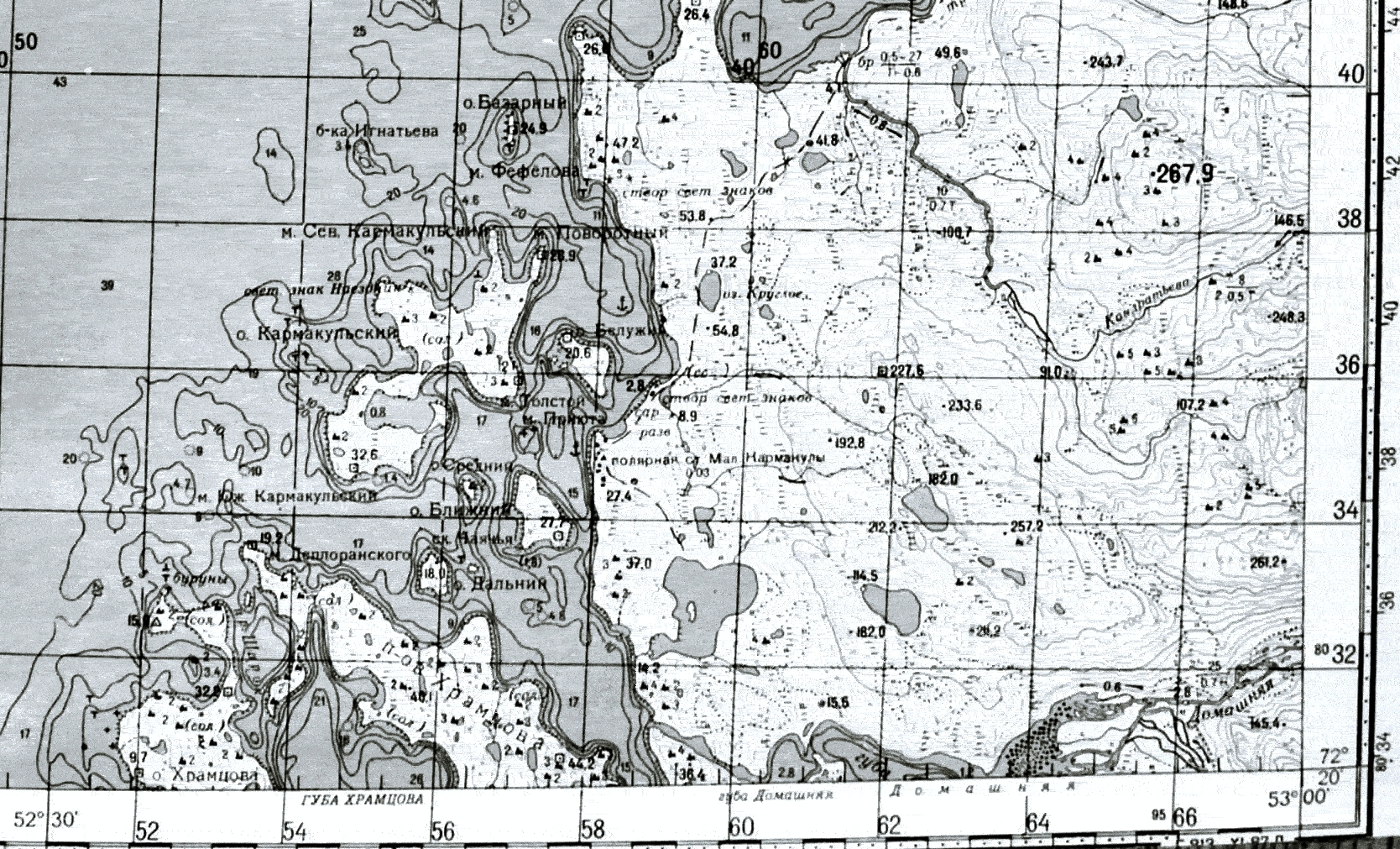 На советских картах о.Тягина нет,есть о.Ближний.