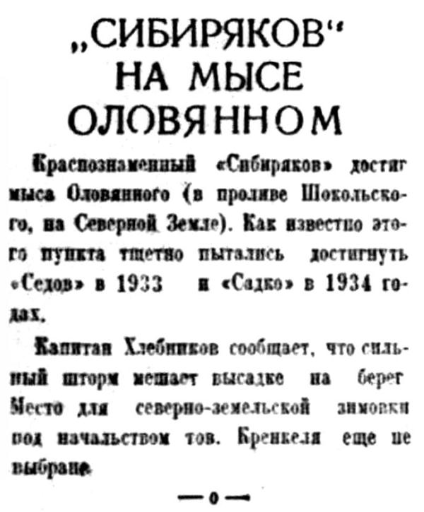 В навигацию 1934 года Хлебников на «А. Сибирякове» доставил партию И. Д. Папанина на мыс Челюскин, в 1935 году на том же «Сибирякове» занимался снабжением полярных станций.