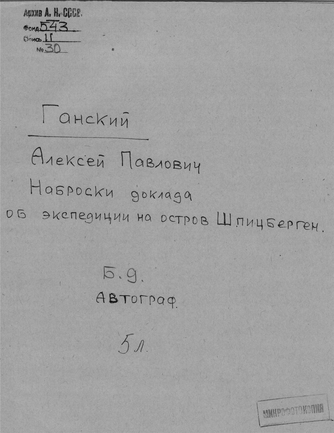 Доклад. Автограф. 17 листов.
