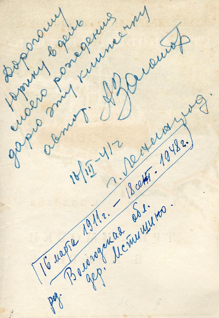 Забыл написать, что автограф дан Ю.М. Барташевичу.