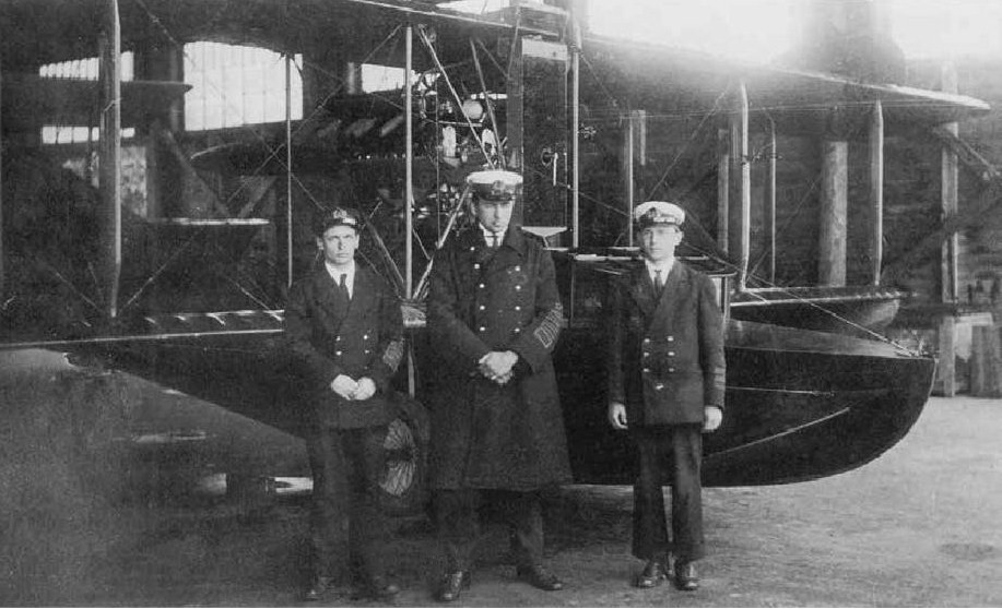 В ангаре на гидроаэродроме в Ораниенбауме у летающей лодки «Норман-Томпсон» NT.2B стоят, слева направо: командующий ВВС Балтийского флота Л.М. Порцель, командующий Морскими силами Республики Э. С. Панцержанский, начальник разведывательного гидроавиационного отряда ВВС БФ Б. Г. Чухновский. 26 июня 1923 г., Ораниенбаум.
