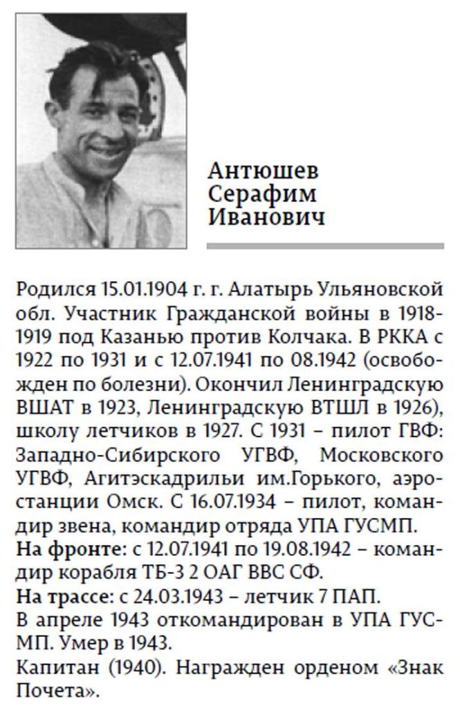 Капитан Серафим Антюшев с августа 1941-го воевал в составе второй авиагруппы ВВС Северного флота. В марте 1943-го стал пилотом седьмого перегоночного авиаполка трассы «Лидер-200», известной, как «АлСиб», то есть «Аляска-Сибирь».