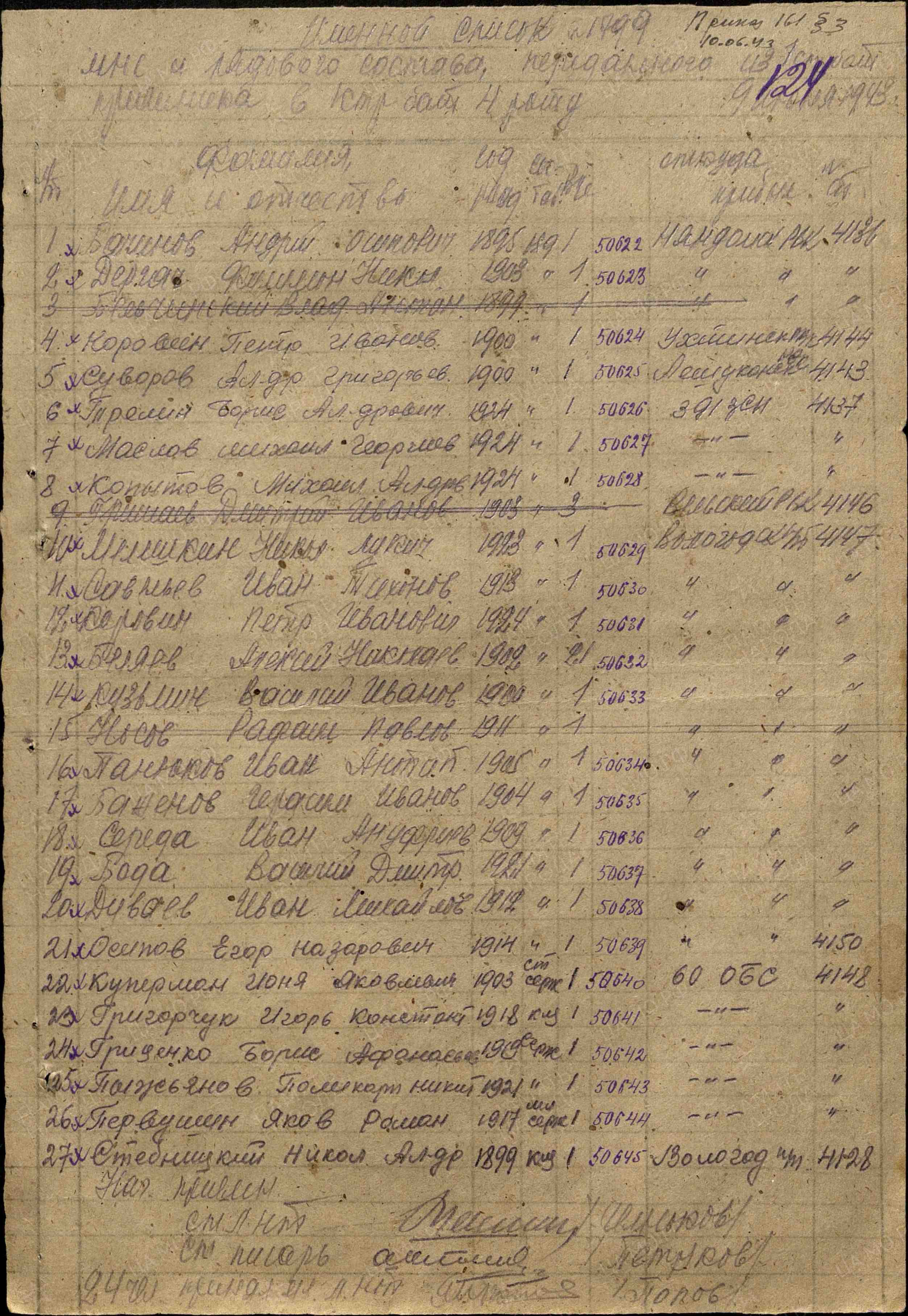 Дата прибытия 09.06.1943