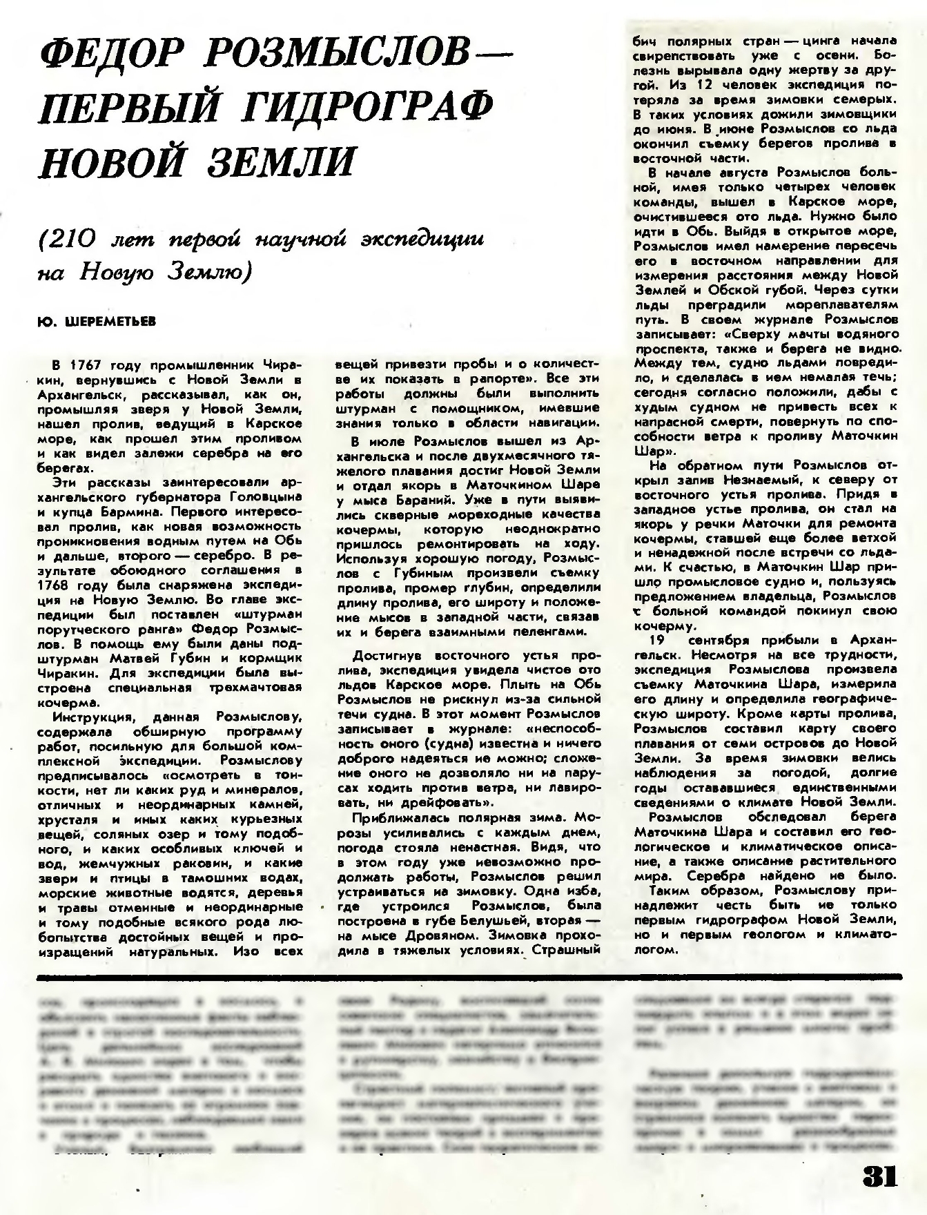 Справка. Фёдор Тимофеевич Розмыслов – штурман подпоручицкого ранга, путешественник XVIII века, положивший основание русским исследованиям Новой Земли. В 1744 году окончил Морскую академию. Служил в Кронштадтской и Ревельской эскадрах. Был штурманом на линейных кораблях. Участвовал в Семилетней войне (1756–1763 годы) с Пруссией. Принимал участие в перегонах новопостроенных кораблей из Архангельска на Балтику. Погиб в октябре 1771 года во время кораблекрушения у острова Гогланд в Финском заливе.