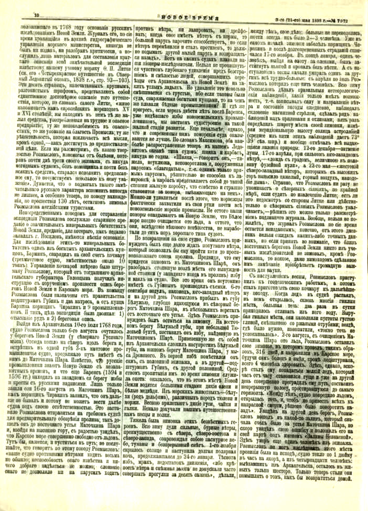 В этом году исполняется 250 лет с момента первого задокументированного исследования Новой Земли Российским государством в ходе экспедиции 1768–1769 гг. под начальством штурмана подпоручицкого ранга Фёдора Розмыслова. Именно из деяний таких самоотверженных русских людей, как этот бесстрашный путешественник и его отважная команда, большая часть которой не вернулась в Архангельск из опасного и тяжелейшего путешествия, по крупицам складывались наши знания об Арктике.