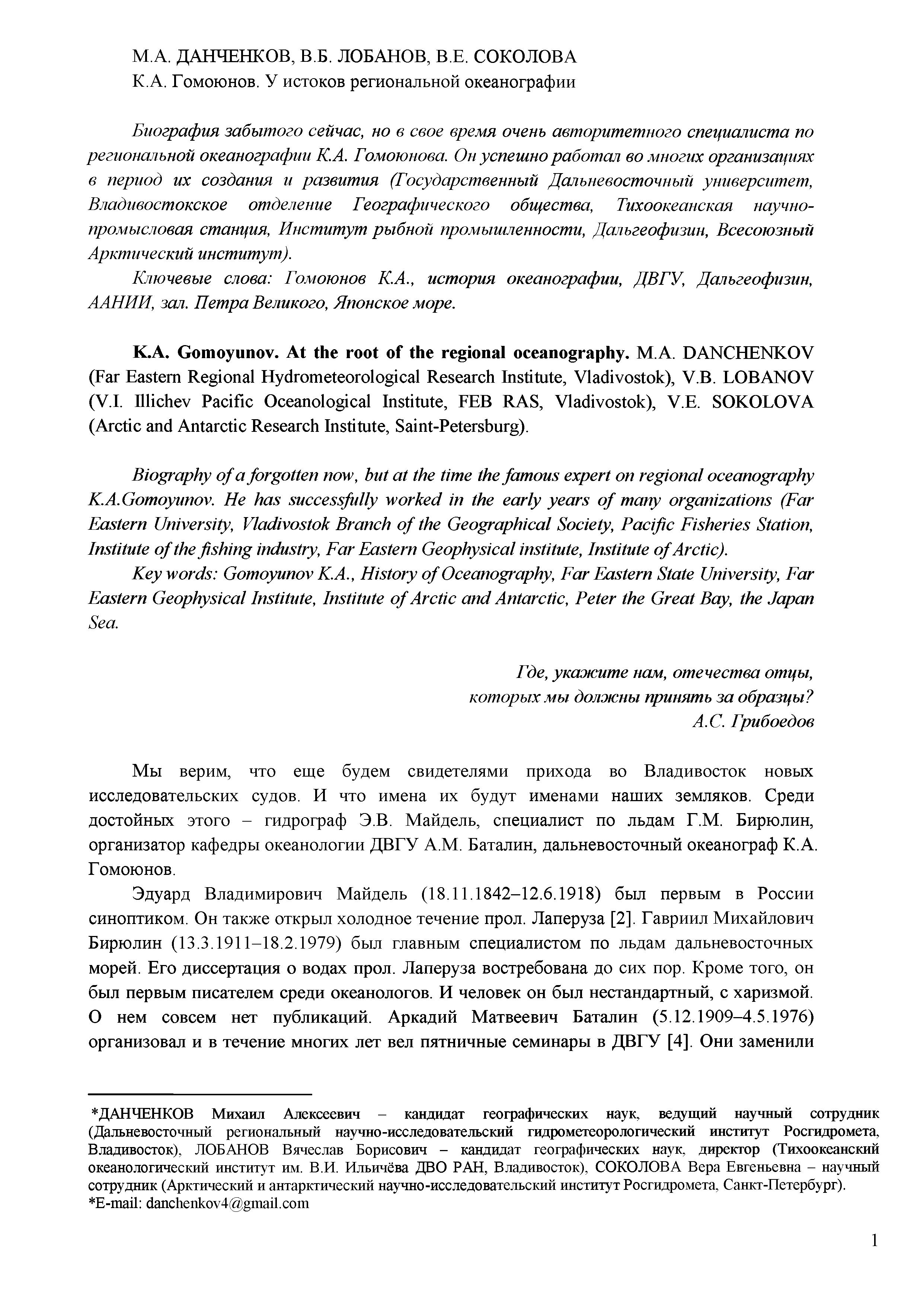 К. А. Гомоюнове, гидрохимическими работами руководила
