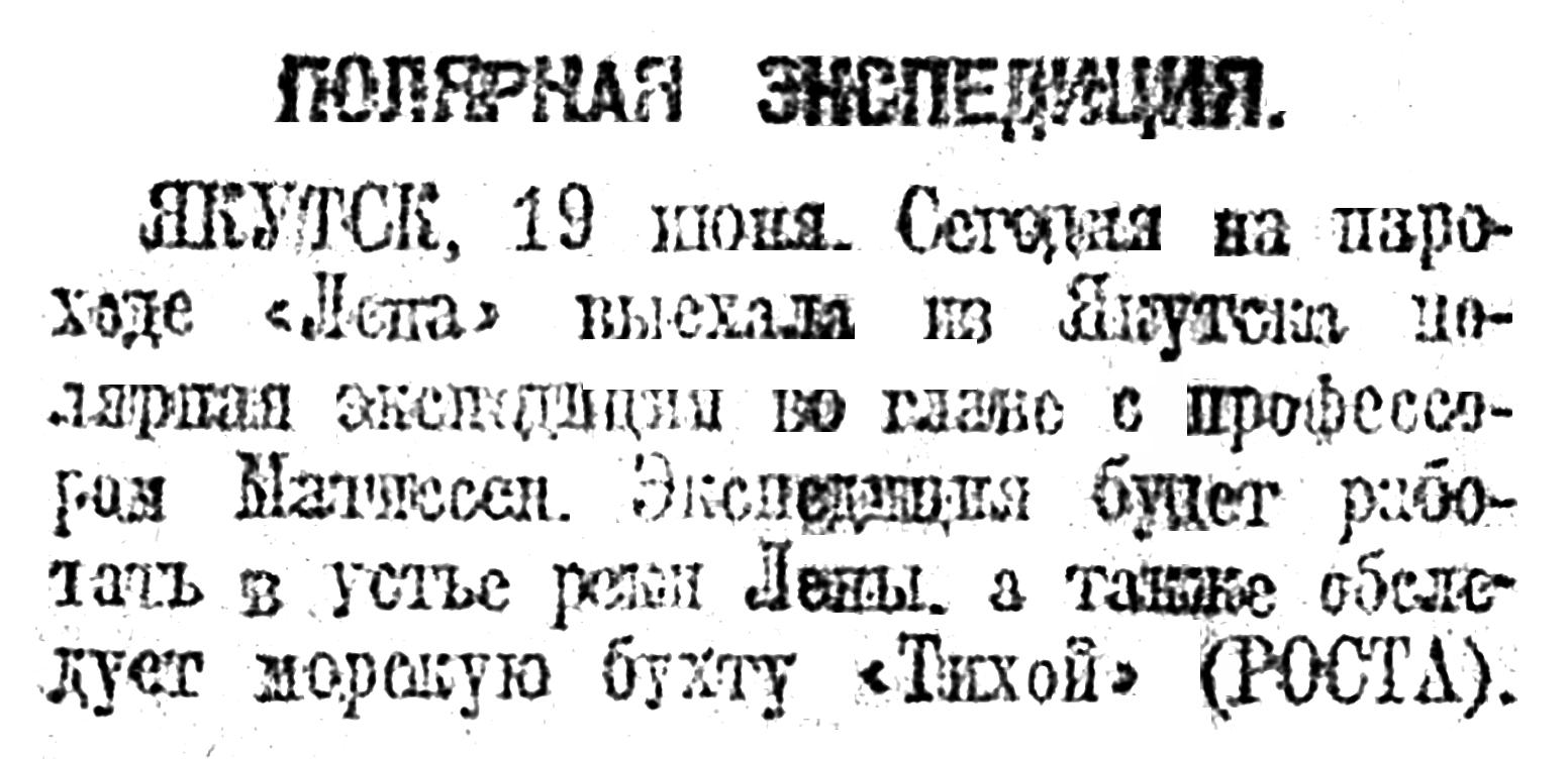 Долго и тщетно искал я в архивах сведения об этом человеке. В 1961 г. Л. А. Гольденберг и С. П. Носов в "Трудах Института истории естествознания и техники" (т. 37, вып. 2) опубликовали доклад В. Н. Колычева о Первой Советской арктической экспедиции, сделанный 23 января 1921 г. и хранящийся в Центральном государственном архиве Красной Армии СССР. К сожалению, никаких подробностей о комиссаре и его дальнейшей судьбе они привести не смогли. Даже имя и отчество и место предыдущей работы удалось узнать лишь из дневника Матисена.