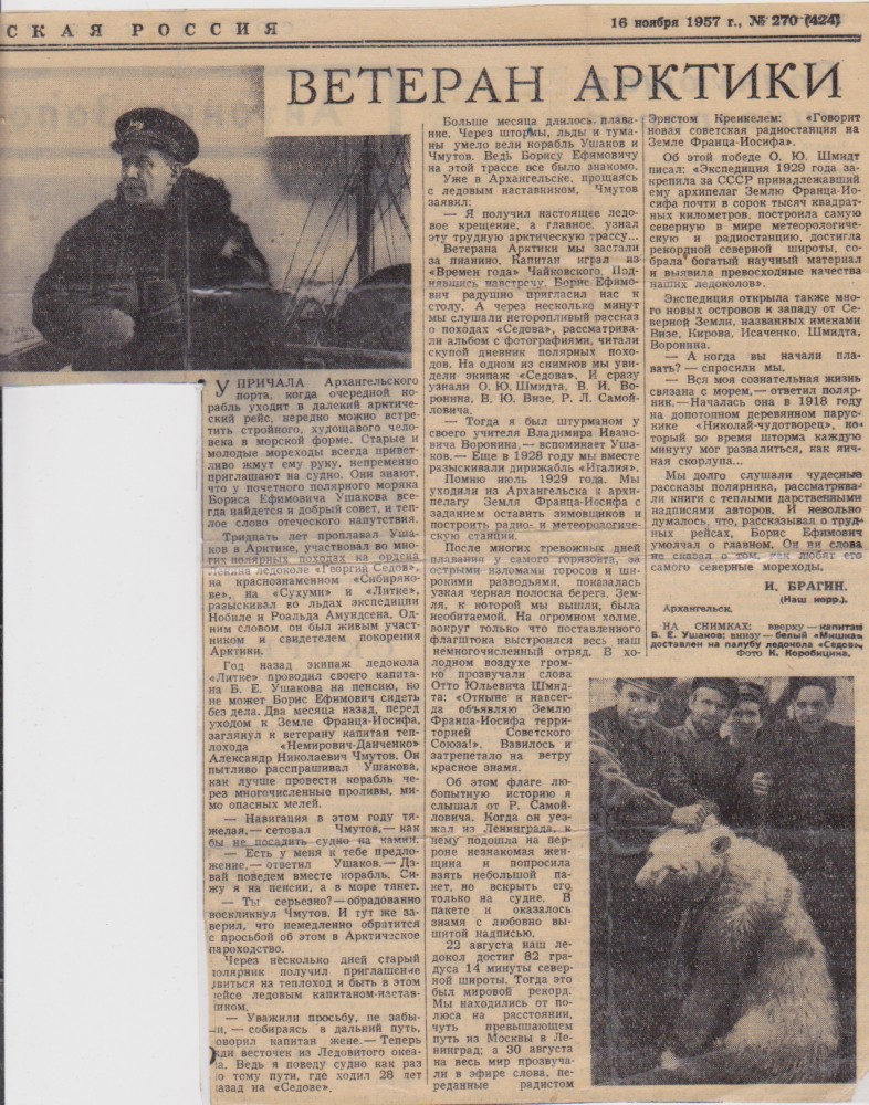 Живёт в Архангельске и старый полярный капитан Борис Ефимович Ушаков. Это он и рассказал мне ситорию своей встречи с старым "Малыгиным", которая оказалось последней...