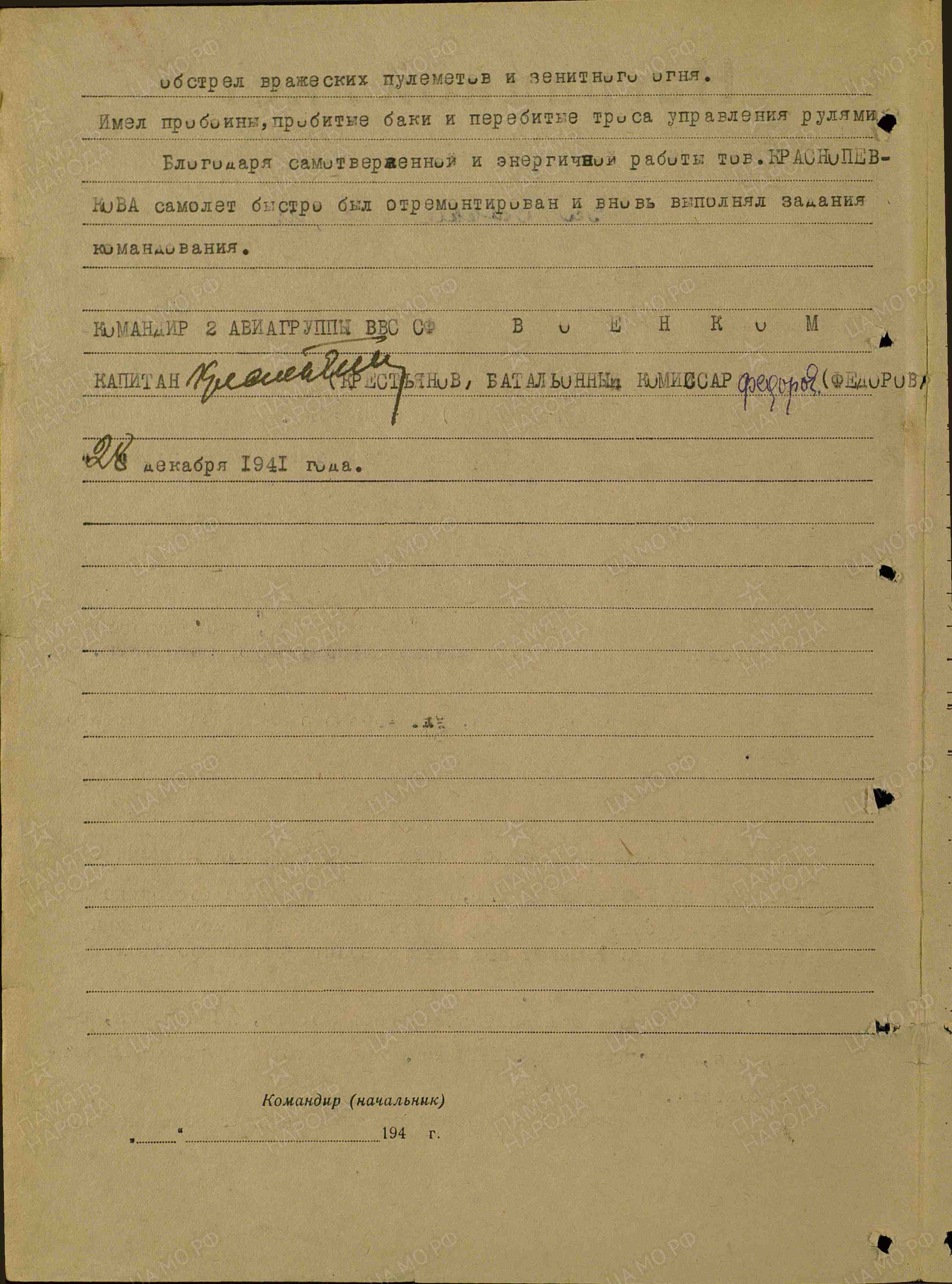 г) За недостаточный осмотр при приёмке, а также за недостаточно тщательный осмотр с-та перед вылетом из Черной б/м 1 кл. Игарского АО тов. Краснопевкову – объявить строгий выговор.
