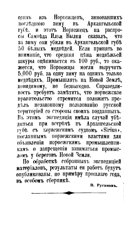 Ниже он продолжает: "Нужно иметь в виду, что направление течений северной части Новой Земли до сих пор остается необследованным и что мои предположения на этот счет являются гипотетическими. Вот почему выяснение этого капитального вопроса, по моему мнению, должно составить самую главную задачу Новоземельской экспедиции в 1910 году. Эта экспедиция должна будет окончательно выяснить вопрос о том, насколько удобен предлагаемый мною торговый путь в Сибирь".
