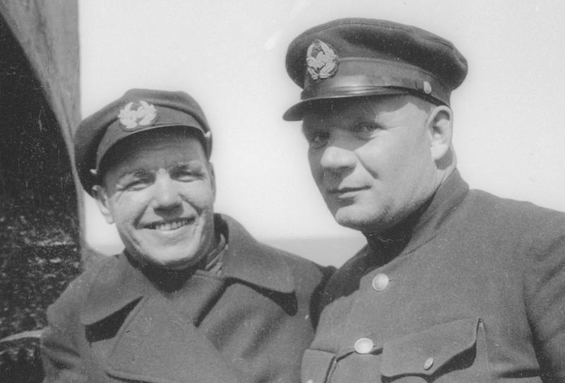 И.В.Доронин с бортмехаником (возможно, Я.Г.Савиным) в период экспедиции по спасению челюскинцев. 1934 г.