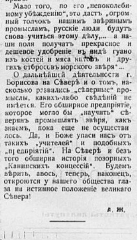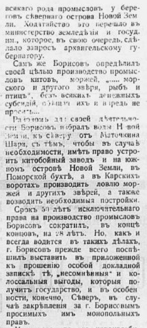 Через несколько дней в Поморскую губу зашел пароход «Пахтусов», на котором по любезному приглашению начальника экспедиции Северного Ледовитого океана А.И.Вилькицкого и командира корабля А.И.Варнека экспедиция А.А.Борисова добралась до Соловков, а оттуда на монастырском пароходе 5 сентября 1901 г. прибыла в Архангельск.