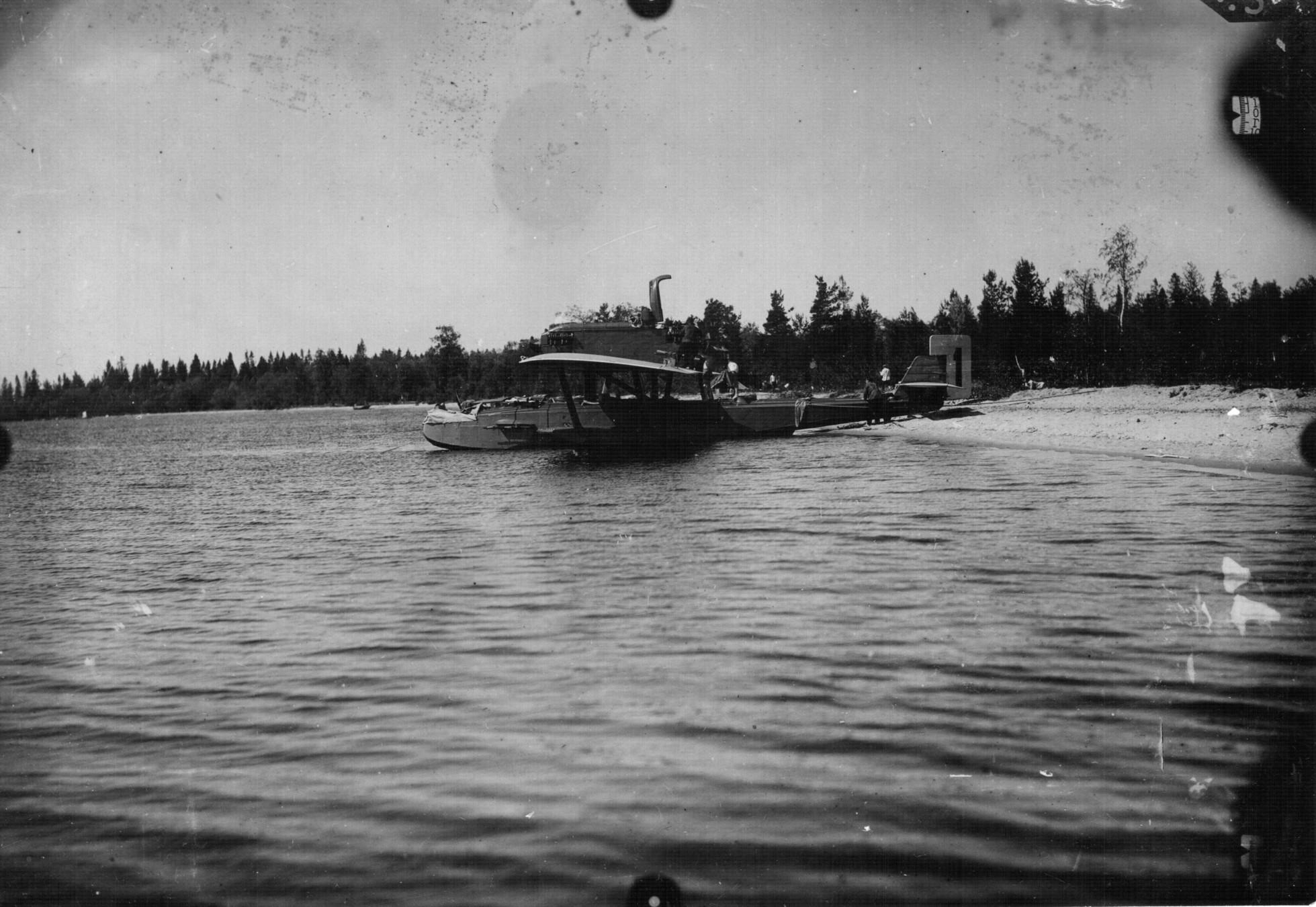 Самолет спешно разбирается в гавани; чтобы грузить его, надо снять крылья и хвостовое оперенье. С крыльями он имеет в размахе почти 30 м, и вряд-ли какой-либо пароход из идущих на север сможет его взять в целом виде. Но и в разобранном его никто не хочет брать. „Лейтенант Шмидт", зафрахтованный ГУСМП категорически отказывается: палуба уже загружена кунгасами, бочками и прочим добром. Управление Морфлота предлагает погрузить его на „Охотск", но сначала и здесь встречаются препятствия: АКО грузит кунгасы и катера, палуба будет занята, кроме того, самолет загородит капитанский мостик. Постепенно все же эти препятствия исчезают, а остается одно—гайки, прикрепляющие крылья, никак не отвинчиваются: из Иркутска прислали негодные ключи. К вечеру 2-го крылья сдались и в сумерках у „Охотска" показывается караван: катер, понтон с крыльями, и в конце—„Н4", туловище стрекозы на высоких ножках.