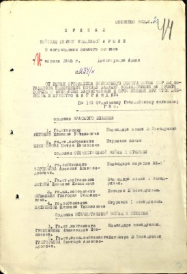 Фронтовой приказ №: 34/н от: 11.04.1945 ВС 1 ВА