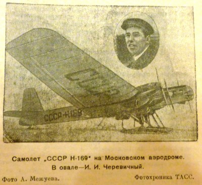 В этой сложной обстановке только один командир самолета, тов. Черевичный соблюдал полное спокойствие. Ни пурга, ни ураганный ветер, ни шестидесятиградусный мороз не могли сломить упорства молодого пилота. Через 8 дней Черевичный достиг Ляховских островов. 11 человек были взяты на борт самолета. Но когда машина поднялась над островом, неожиданно правый мотор окутался густым дымом: лопнул коленчатый вал и разбил картер. Черевичный на одном моторе маcтepcки посадил перегруженный самолет. Прошло всего несколько дней, и полет с 20 полярниками и большим грузом пушнины был продолжен и блестяще завершен в Иркутске.