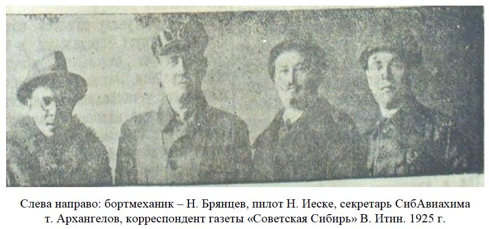 ЗЫ. Пилот самолета "Сибревком" Н.М.Иеске также упоминается в сборнике рассказов В.Зазубрина "Неезжеными дорогами", впервые опубликованного в 1926 г. в журнале "Сибирские огни"
