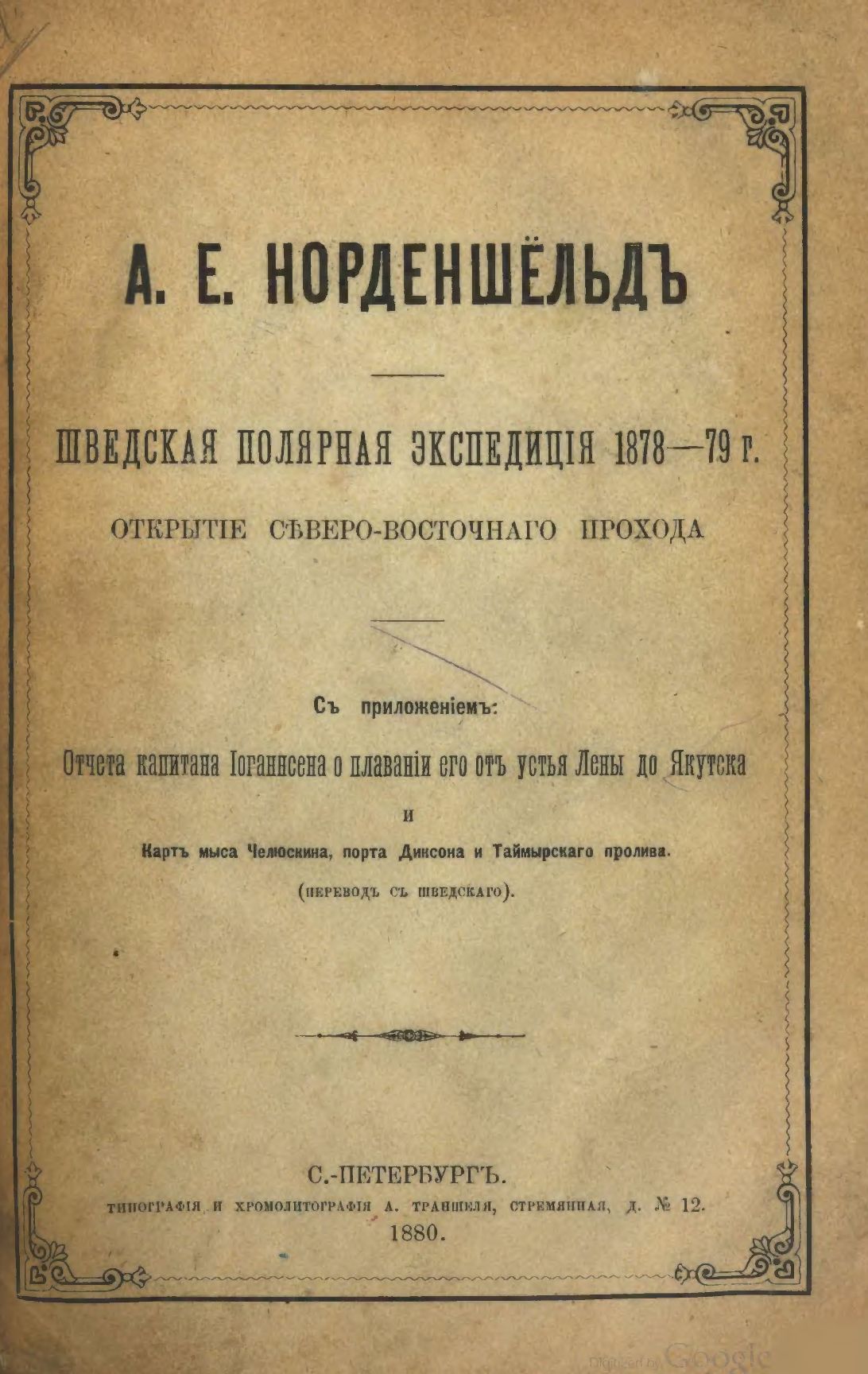 Норденшельд, Адольф Эрик - Шведская полярная экспедиция 1878—79 г., СПб.: Типография и хромолитография А. Траншеля, 1880. — 215 с.