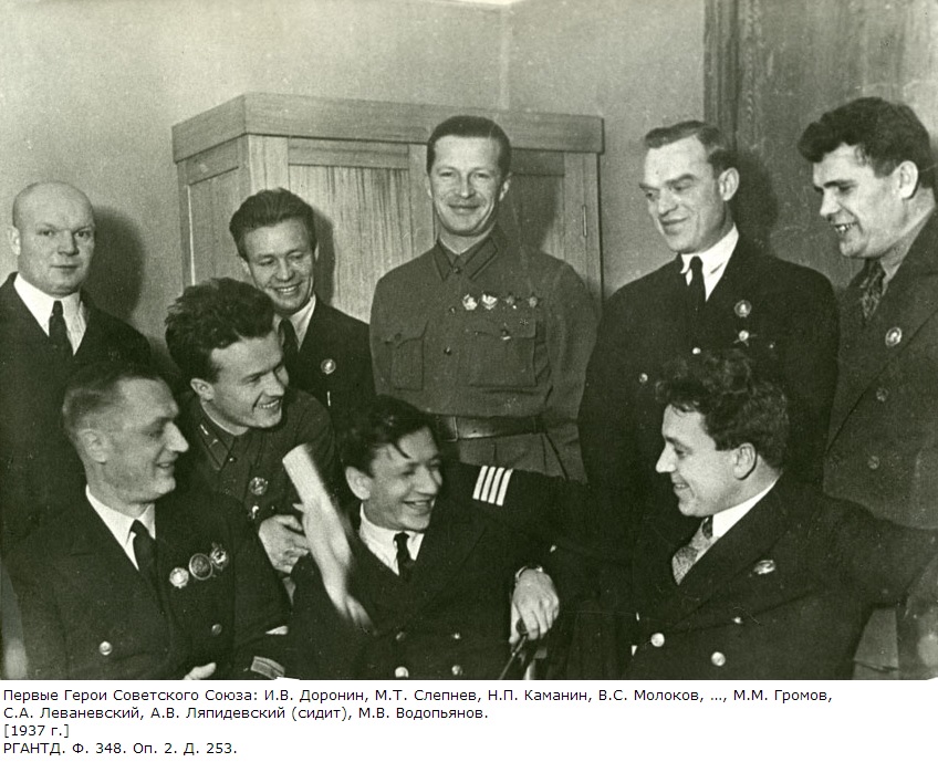 avianavigator пишет:"Первые Герои", середина 30-х, М.Т. Слепнев - сидит крайний слева