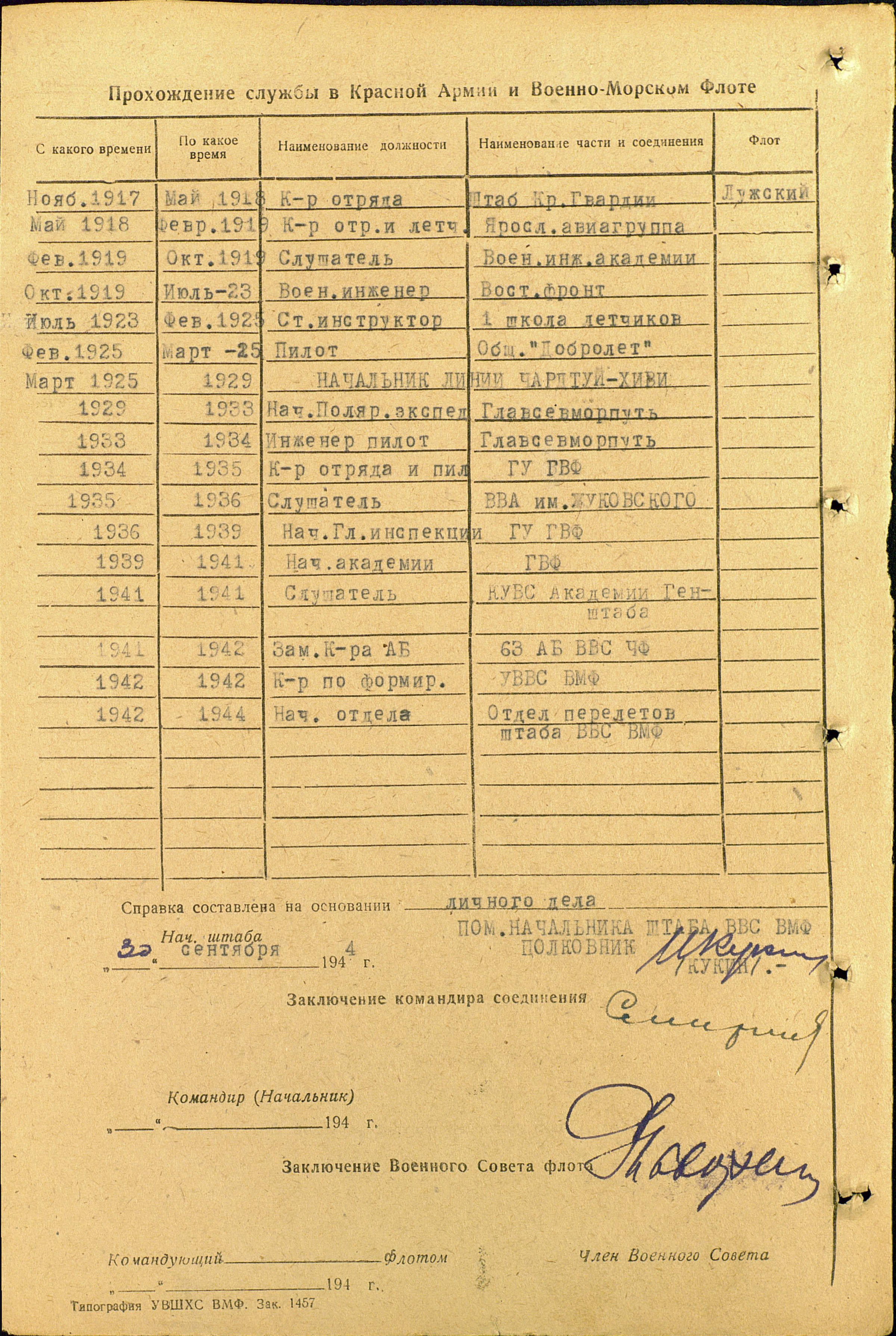 П. 1. Заместителя Начальника ГУСМП – т. Ушакова Г.А., пилота ГУСМП – Леваневского и прикомандированного инженера-пилота ГУГВФ Слепнёва М.Т. числить с 17 февраля с.г. в секретной Спец-командировке.