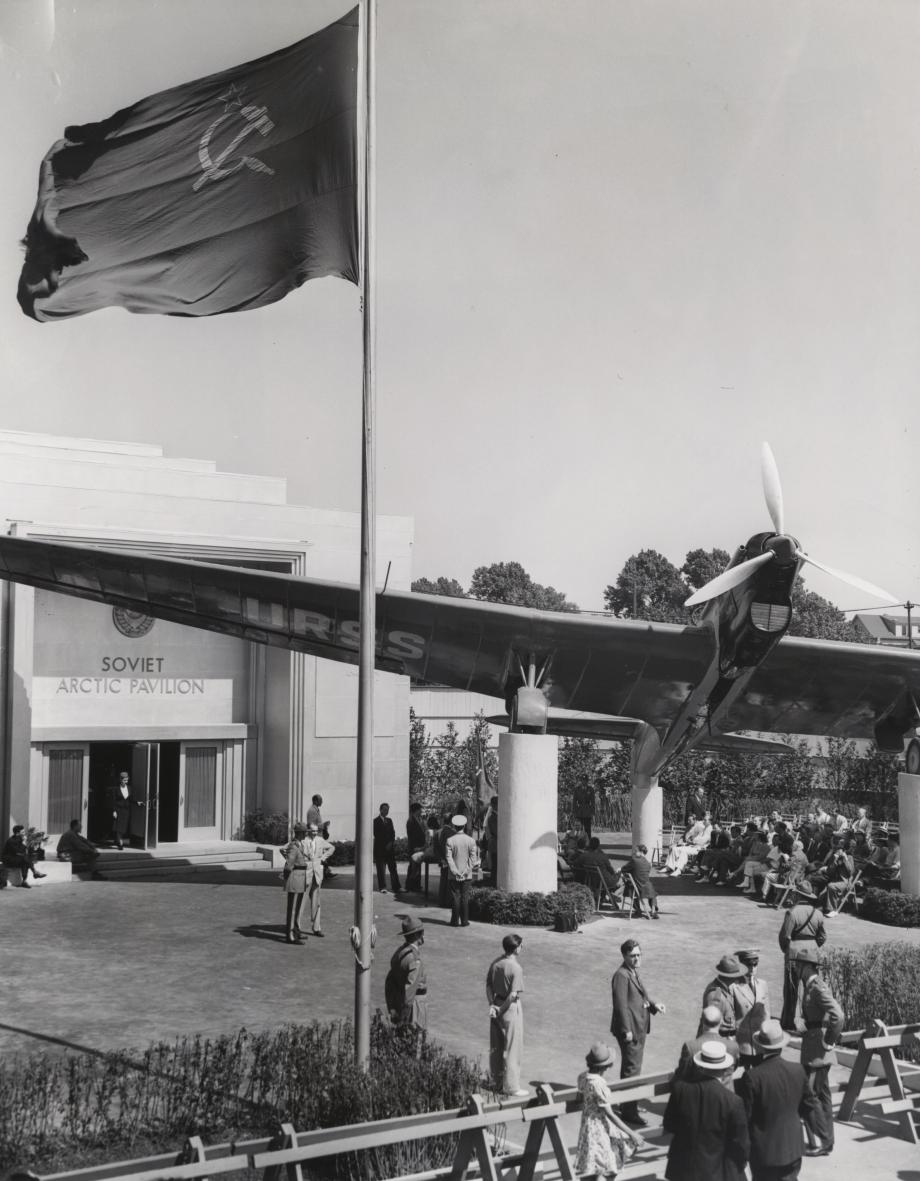 :": Valery Chkalov’s famous transpolar plane lived outside the entrance to the Arctic Pavilion.
