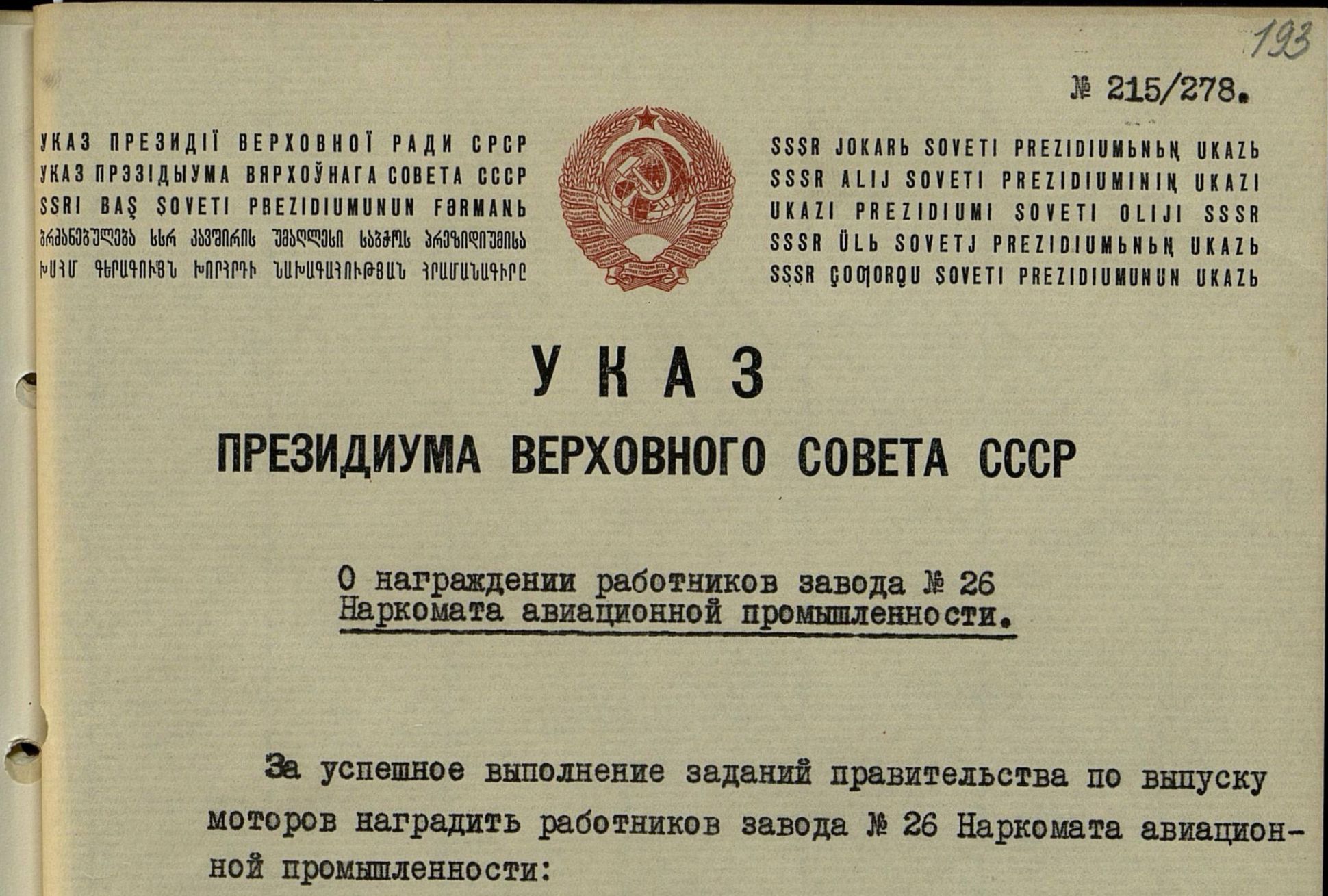Проварихин Ростислав Борисович, заместитель начальника цеха авиационного завода №26, в 1943 г. награжден орденом "Знак Почета"