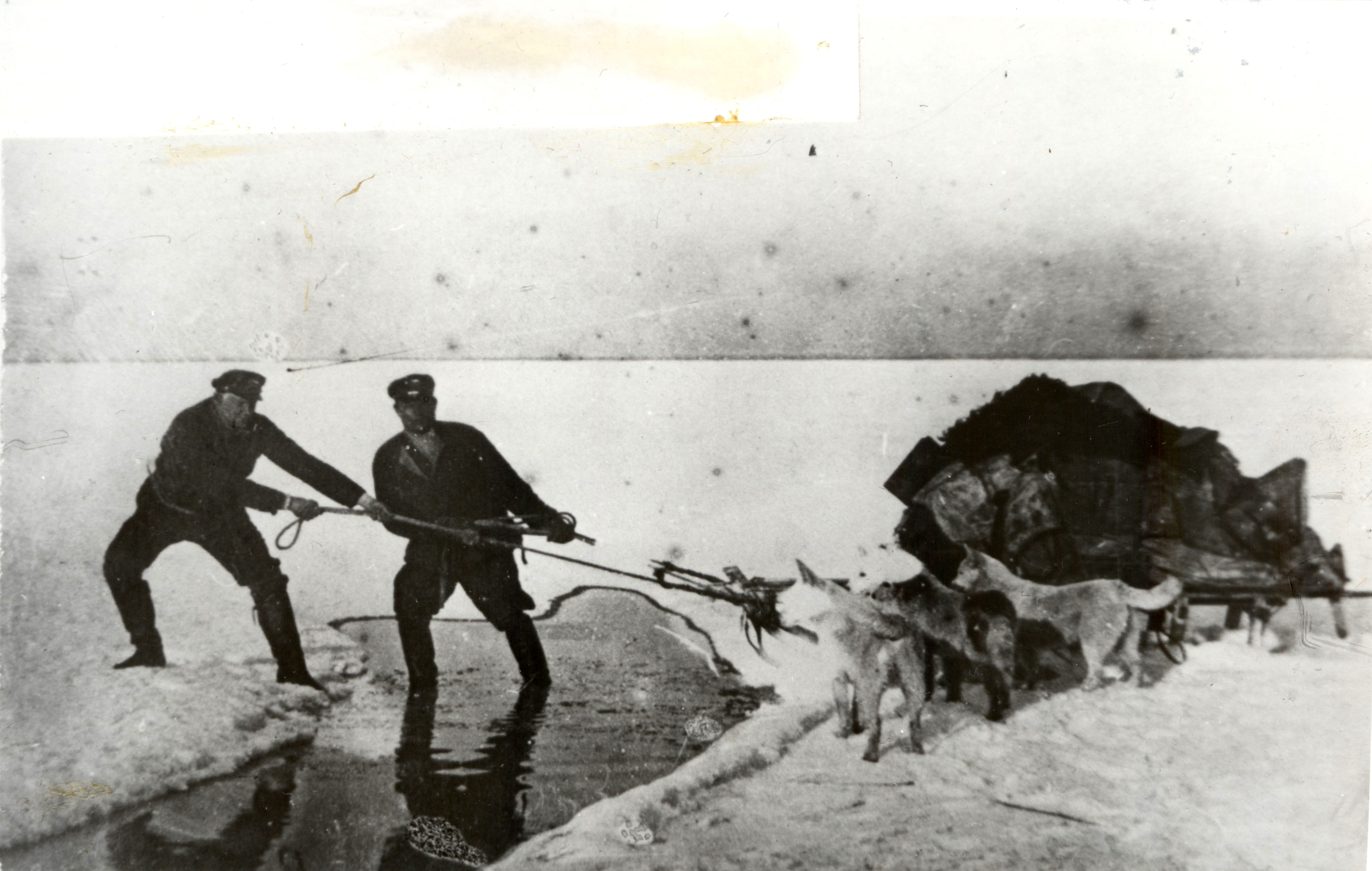 П.В. Виттенбург (слева), А.Ф. Дицкалн, Давид Самойлович Гальперин, Вайгачская экспедиция ОГПУ. о. Вайгач, 1934 год.